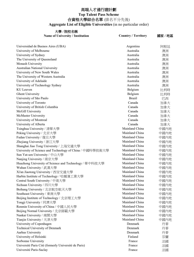 ✅資料二:香港高才通院校名單