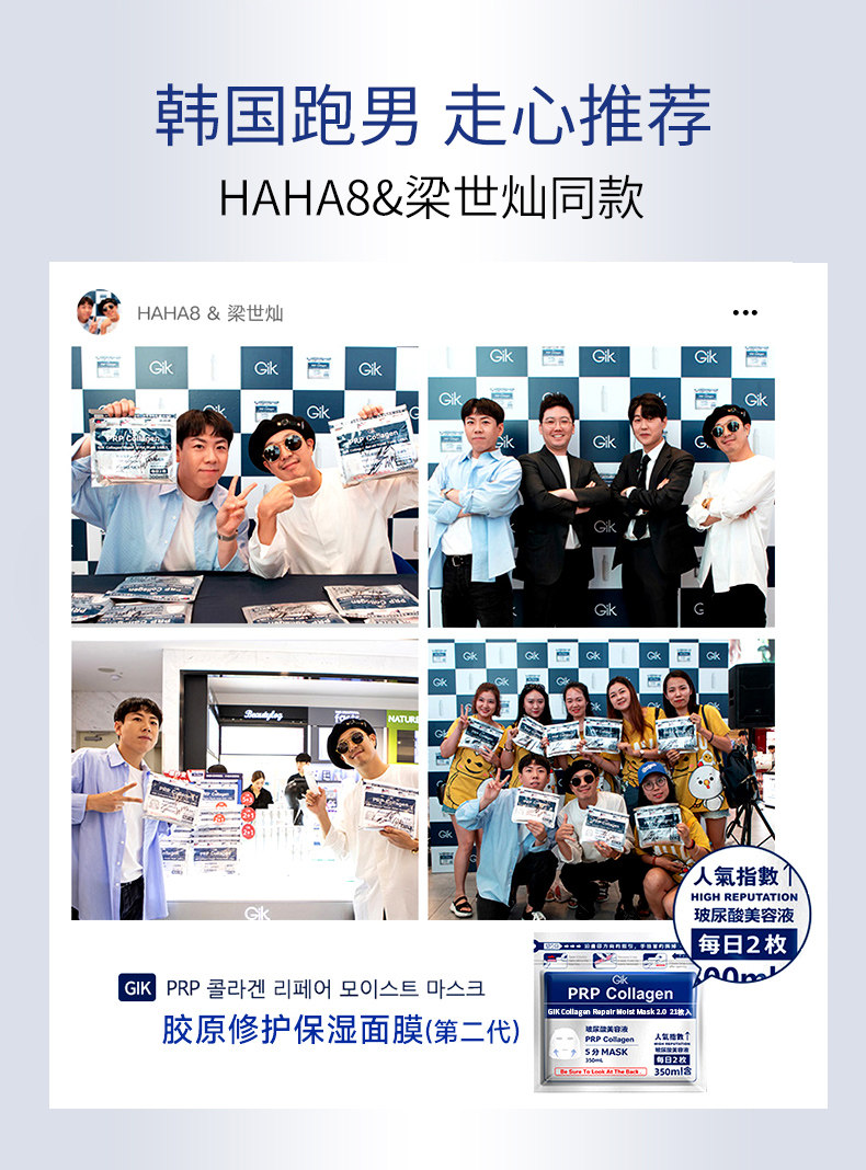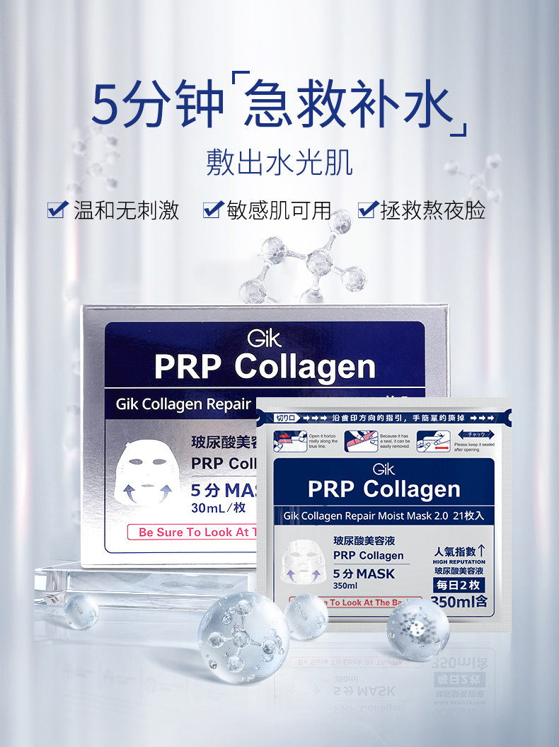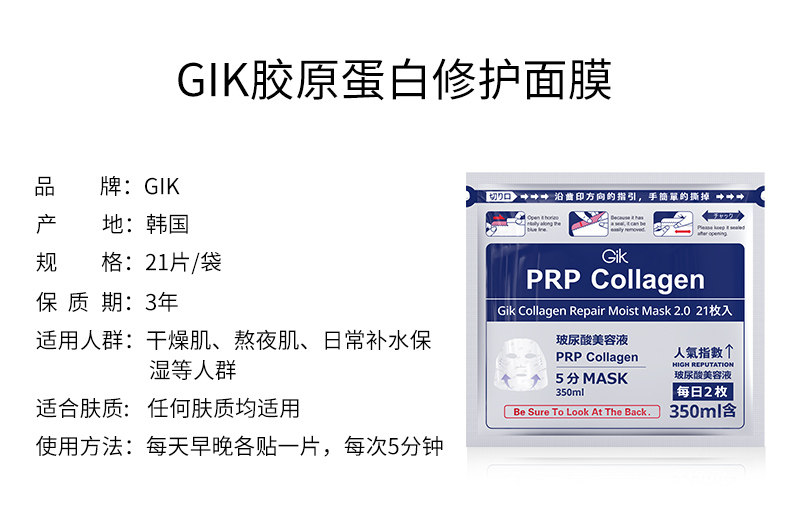限时买2送1| Gik胶原蛋白急救修护面膜女玻尿酸补水保湿清洁水润
