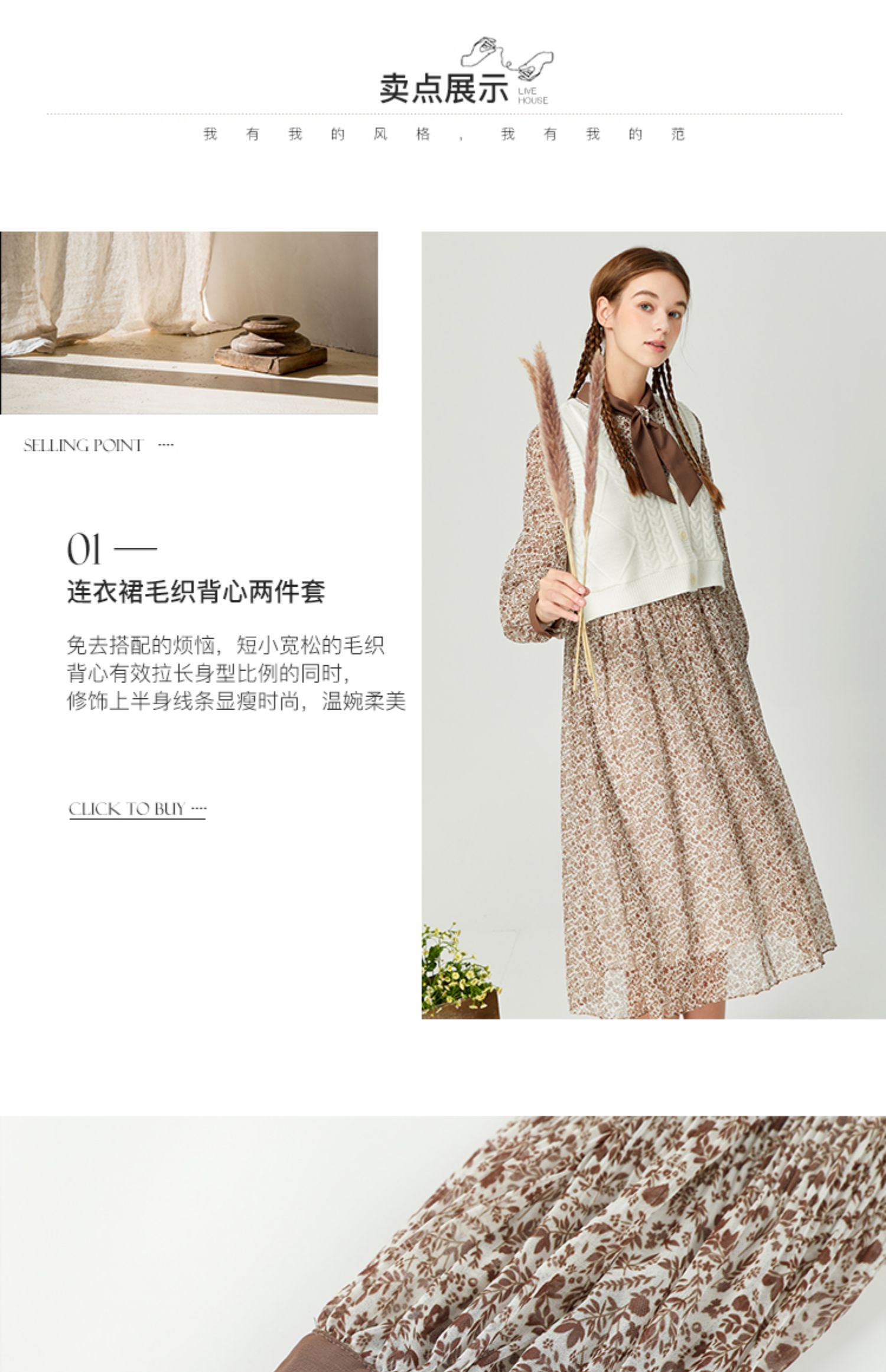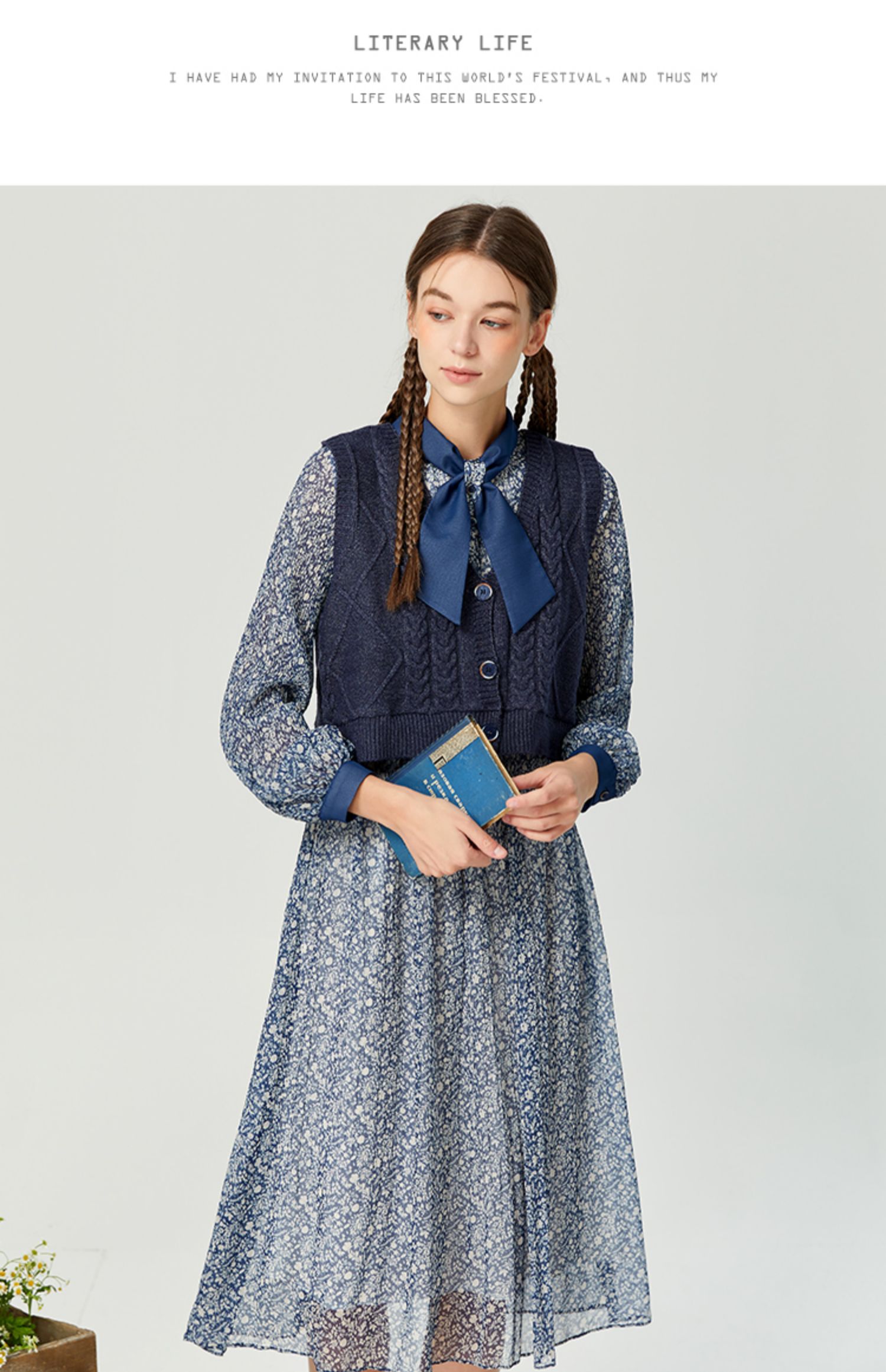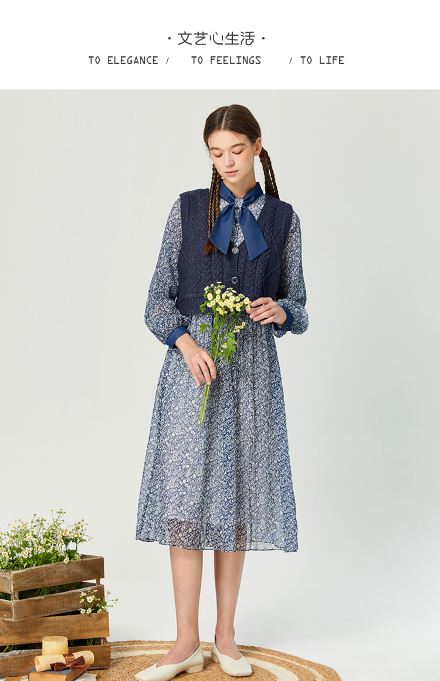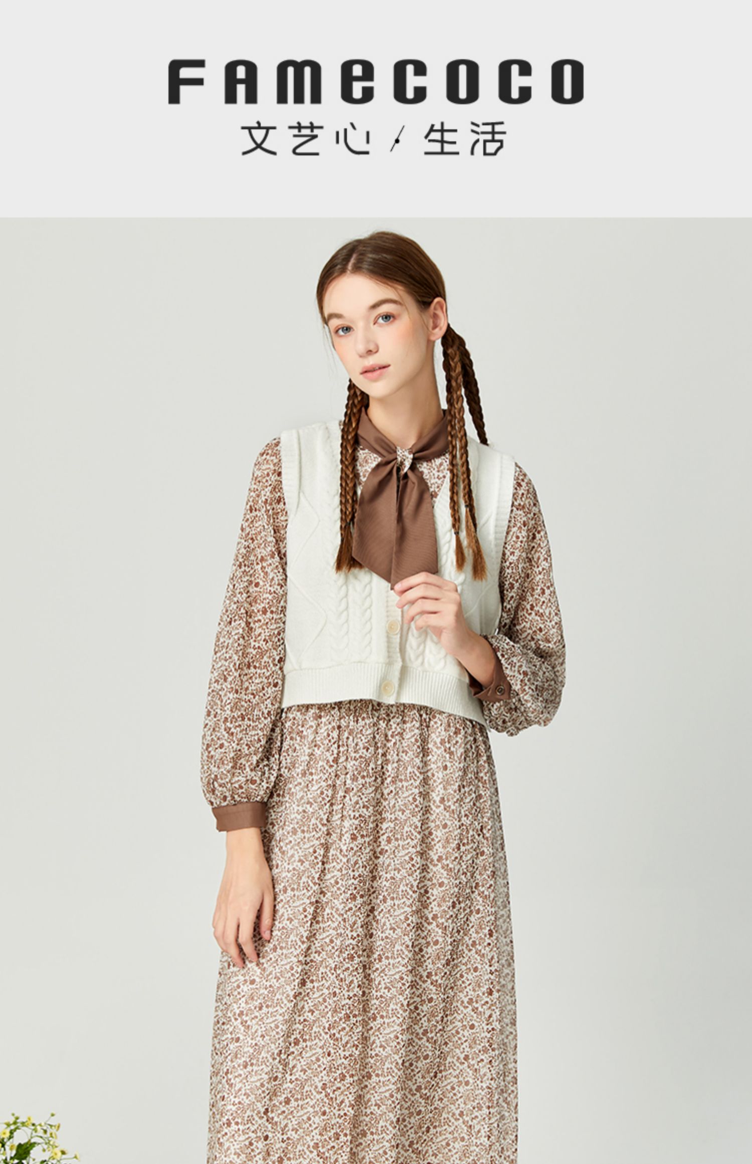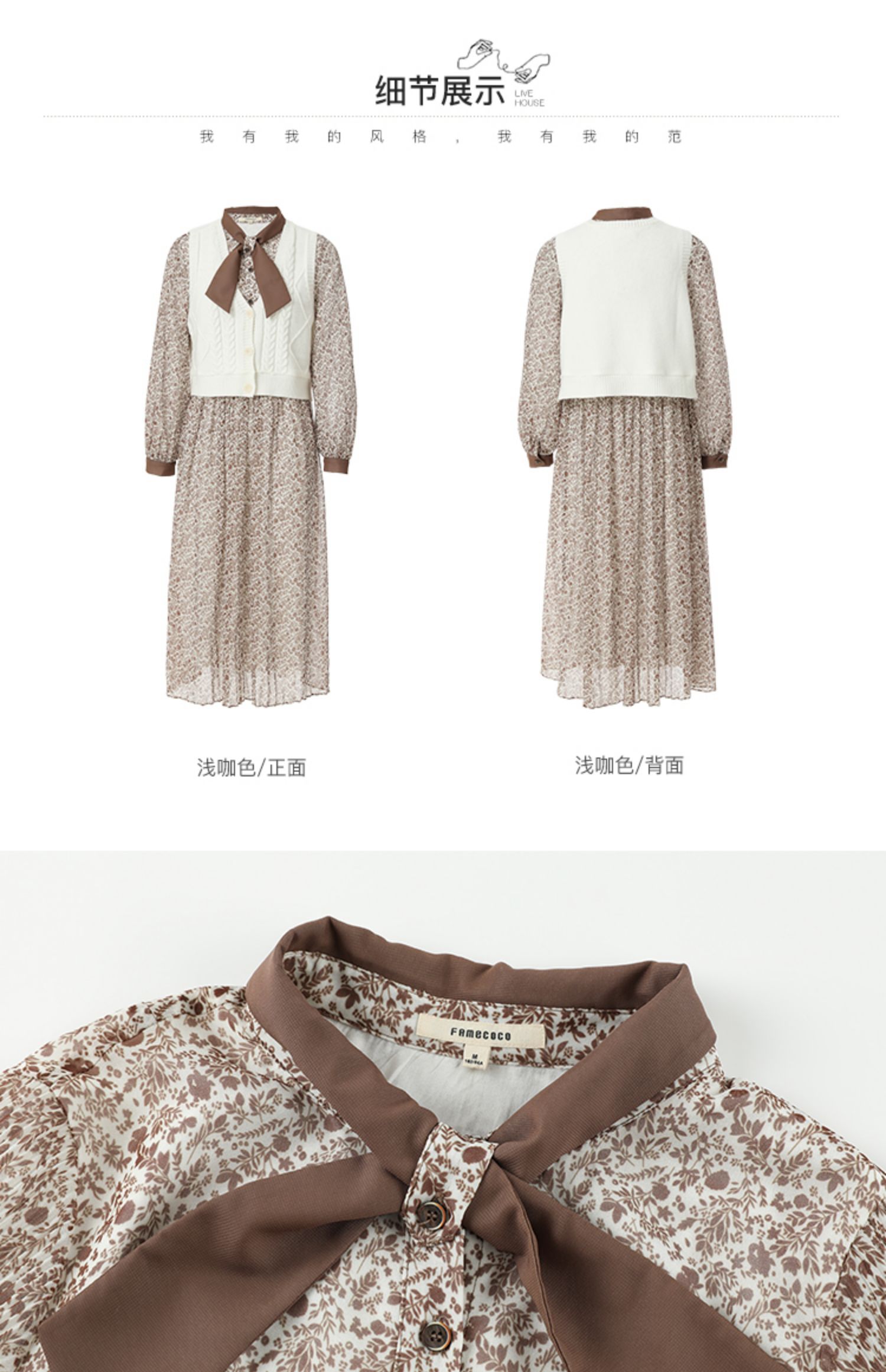 famecoco范可儿温柔女神范两件套秋季女装针织雪纺套装裙D216EA302