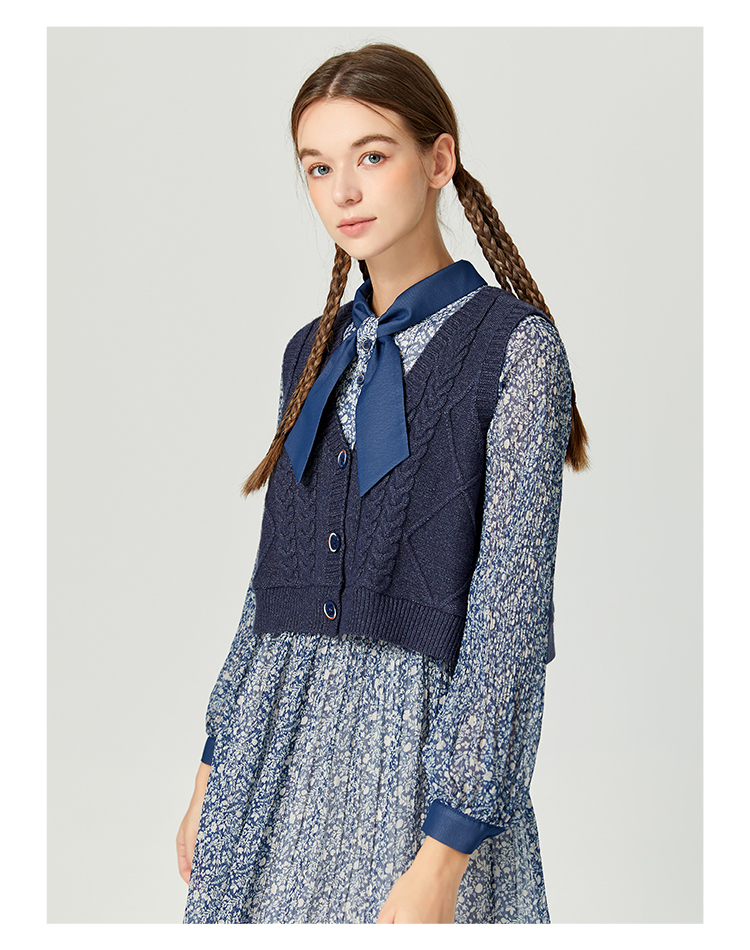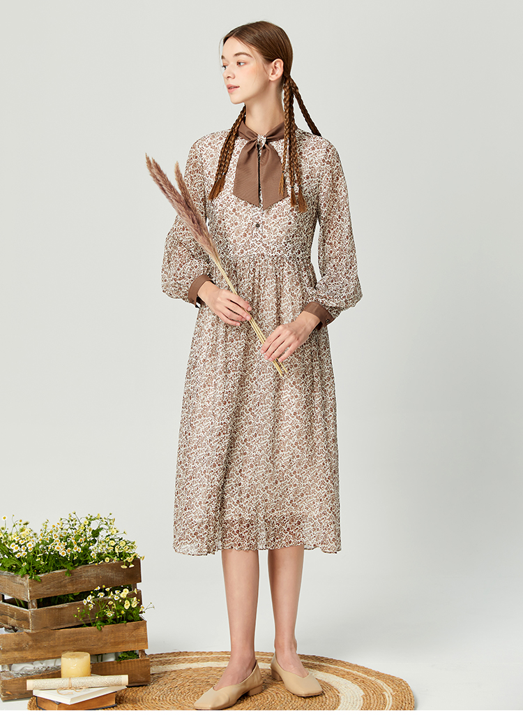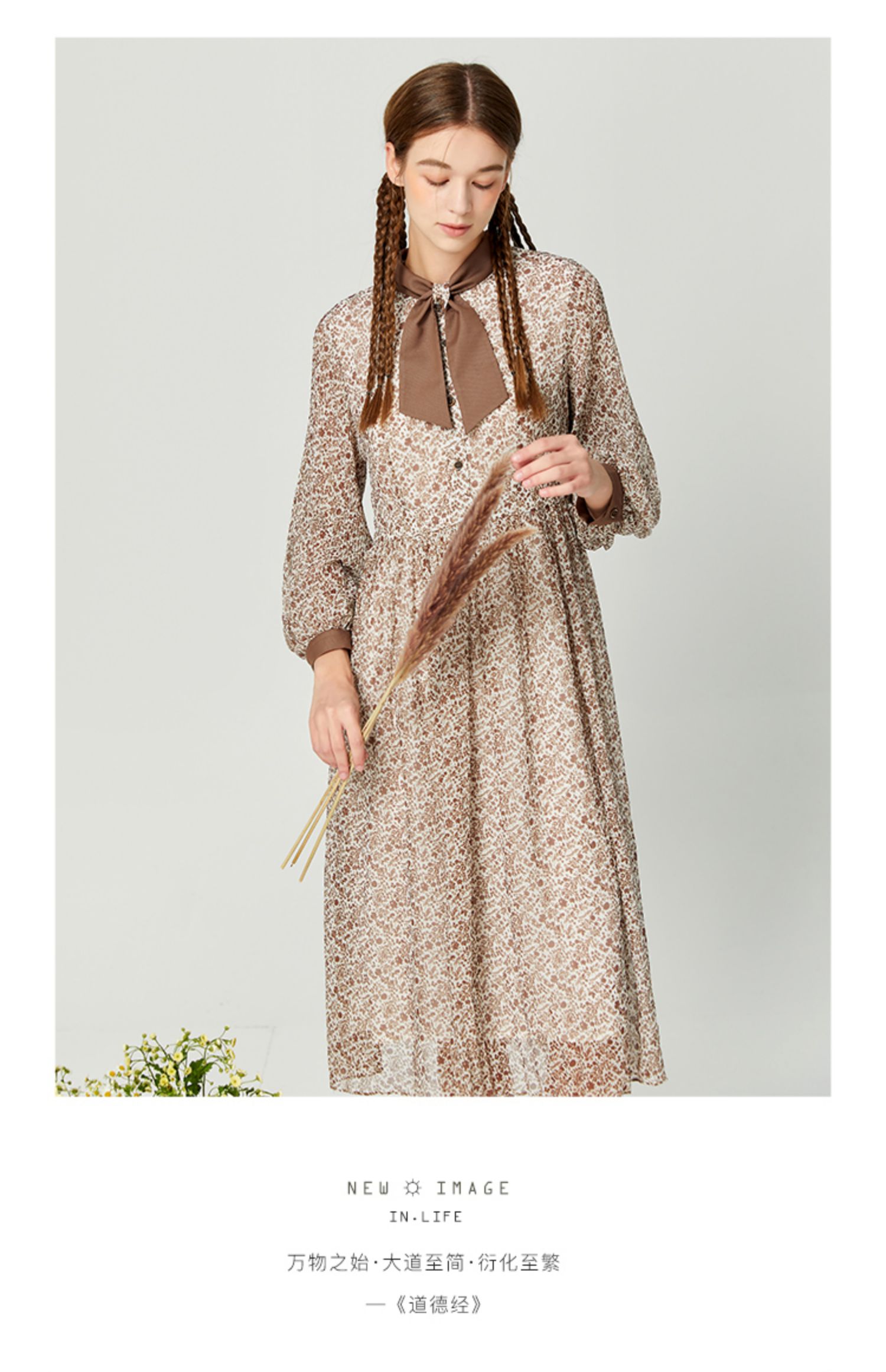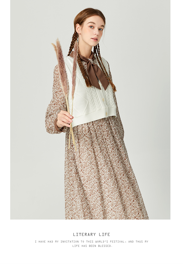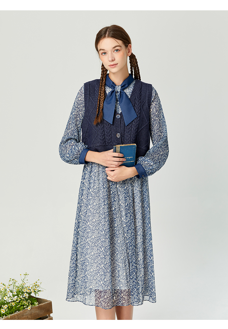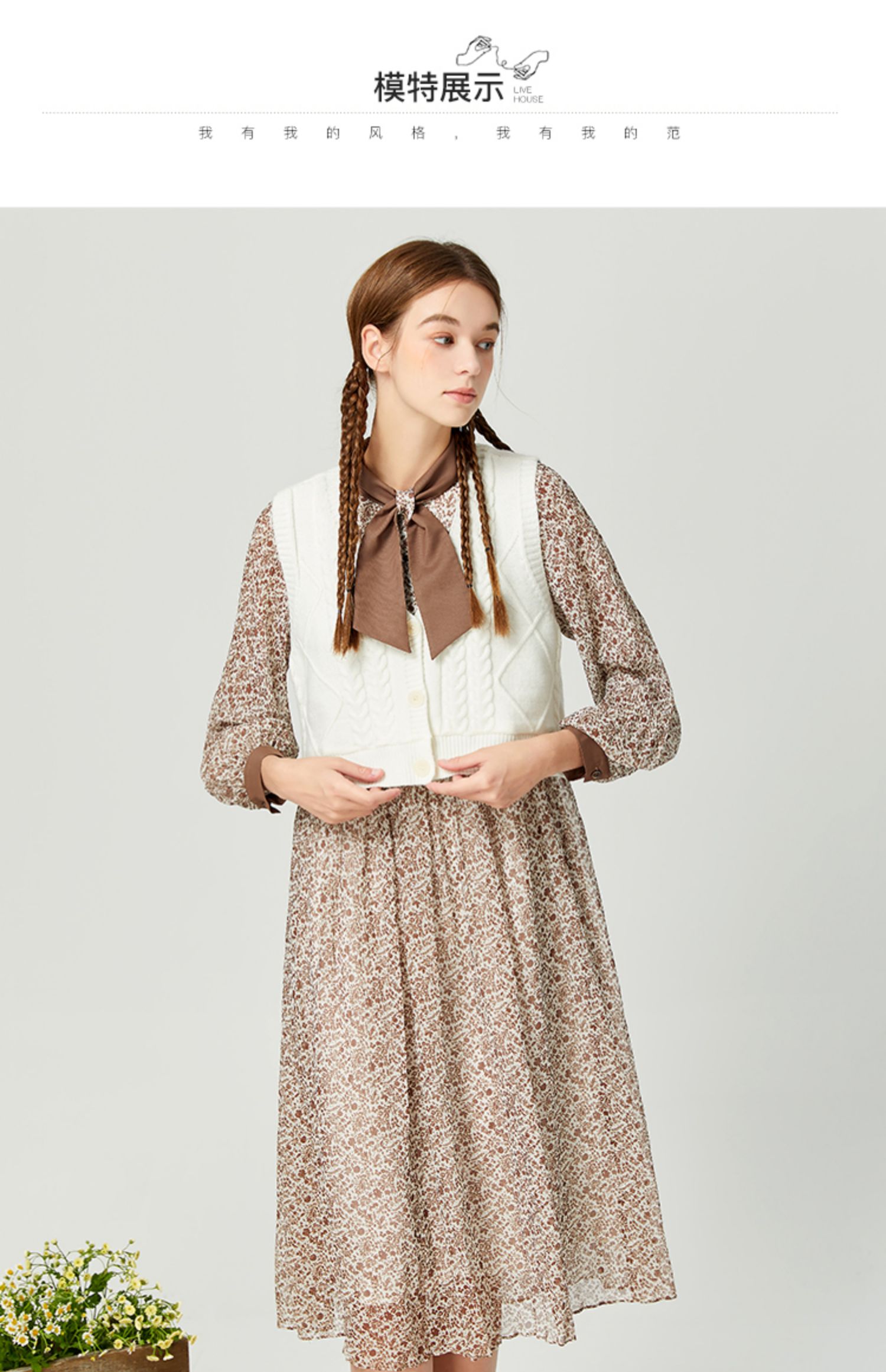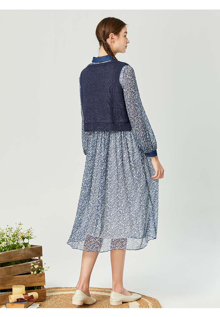 famecoco范可儿温柔女神范两件套秋季女装针织雪纺套装裙D216EA302
