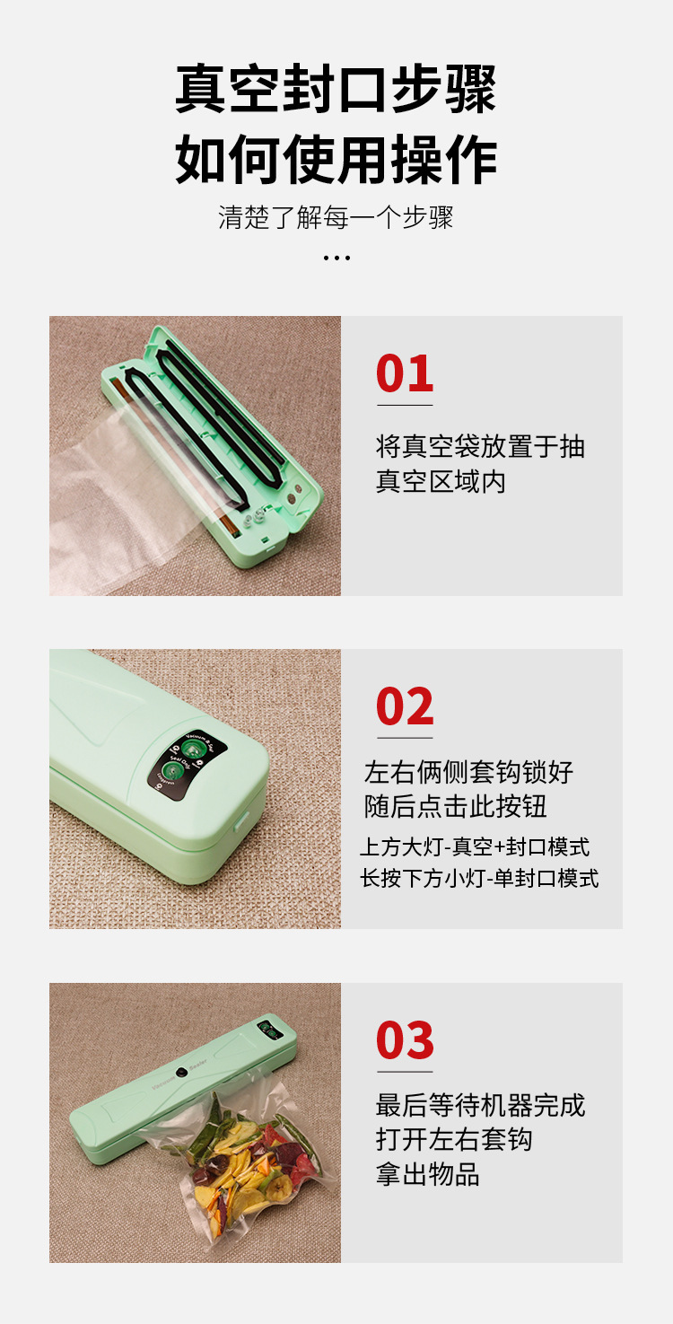【一键真空!锁住美味】家用封口机食品全自动塑封真空密封机厨房干湿两用真空保鲜包装机。ry