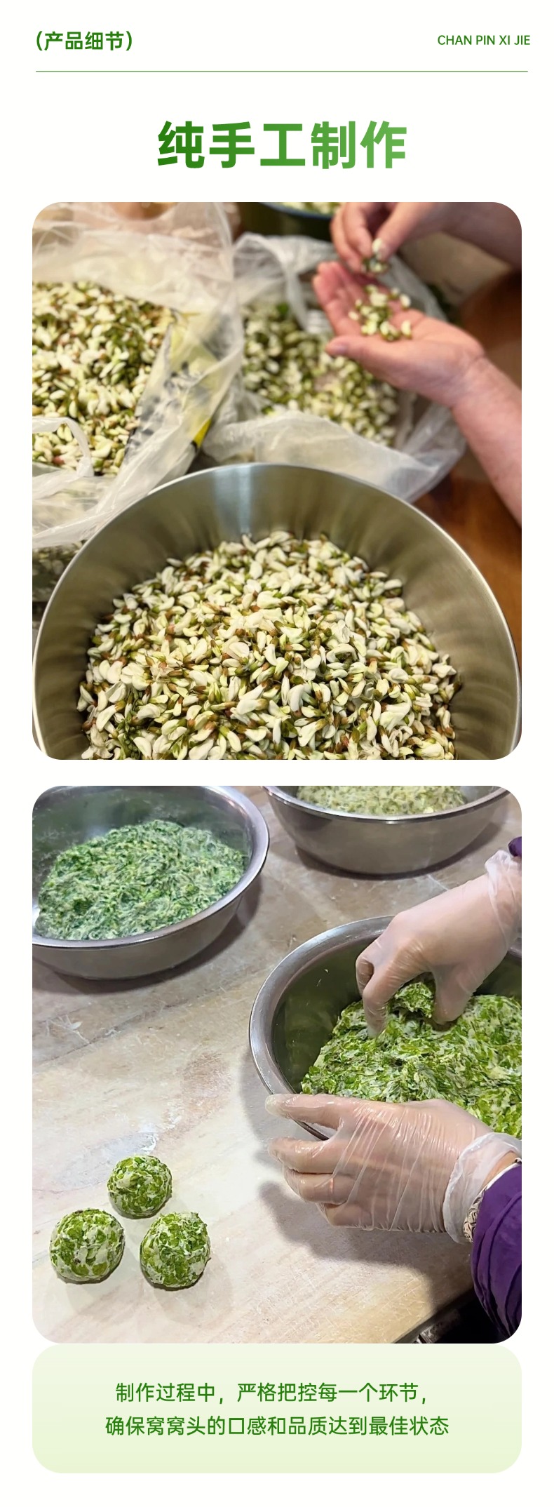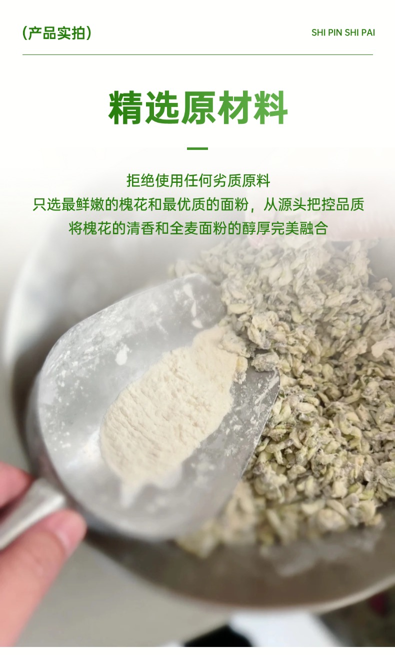 【产品亮点】纯手工制作,采用新鲜槐花,