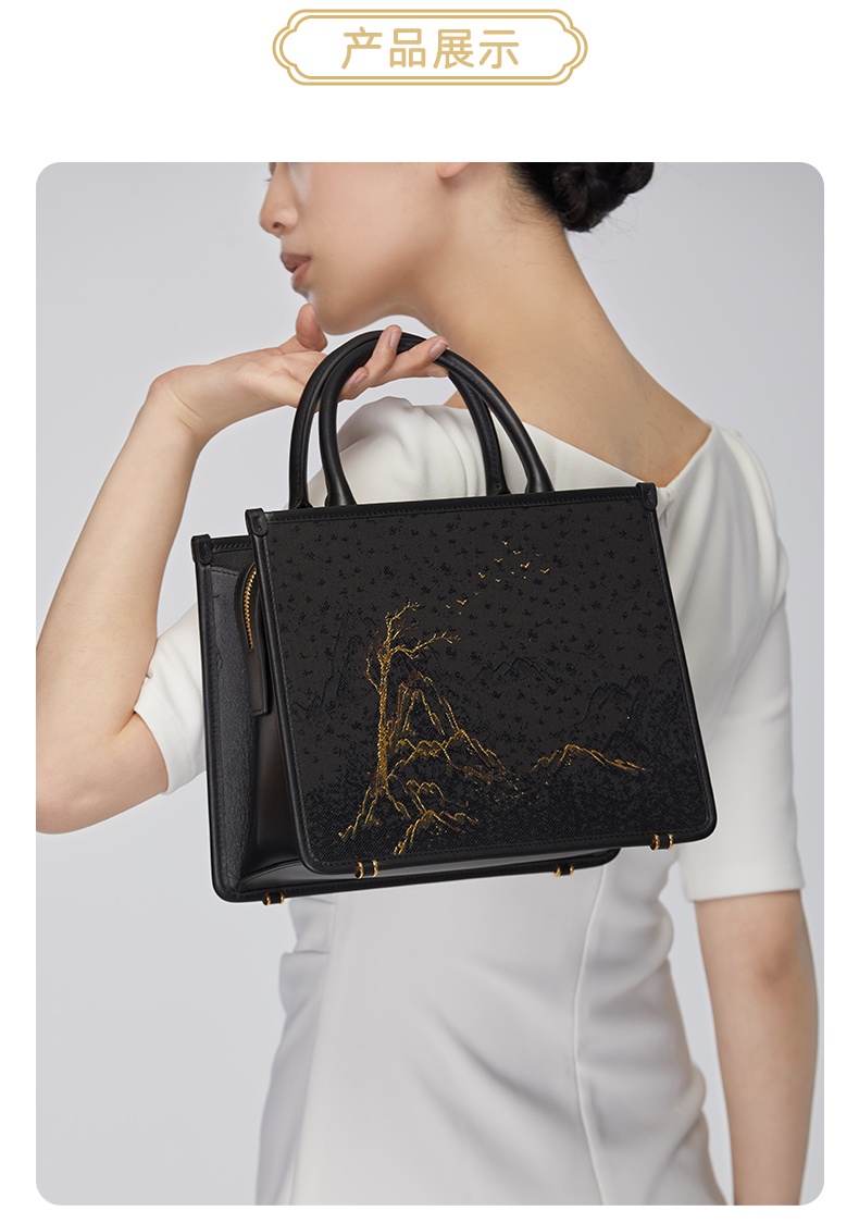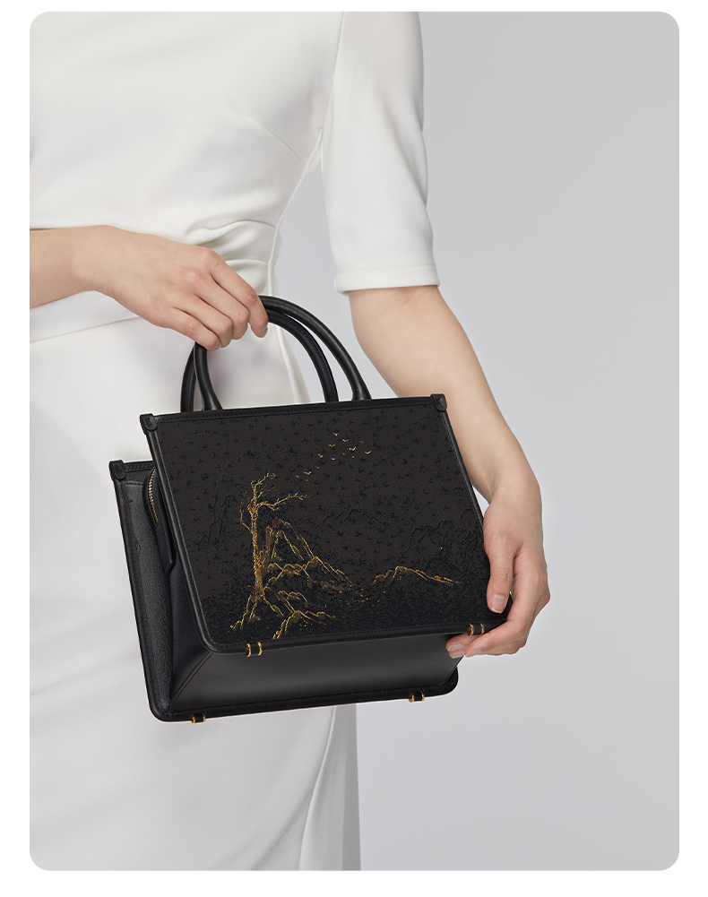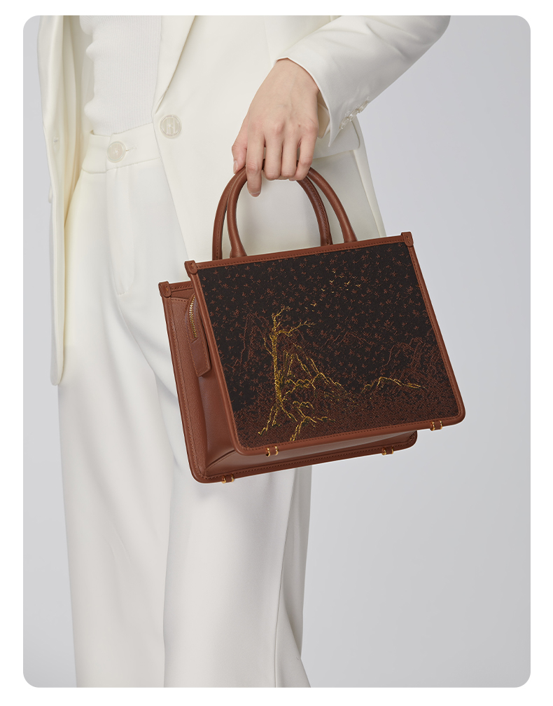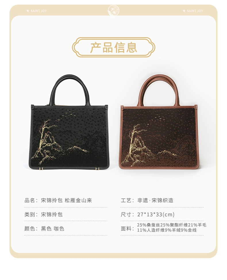 SAINTJOY/上久楷 宋锦女式拎包 松雁金山来 BWW22A0602