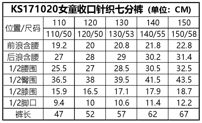 Senselead森力/女童收口针织七分裤 KS171020
