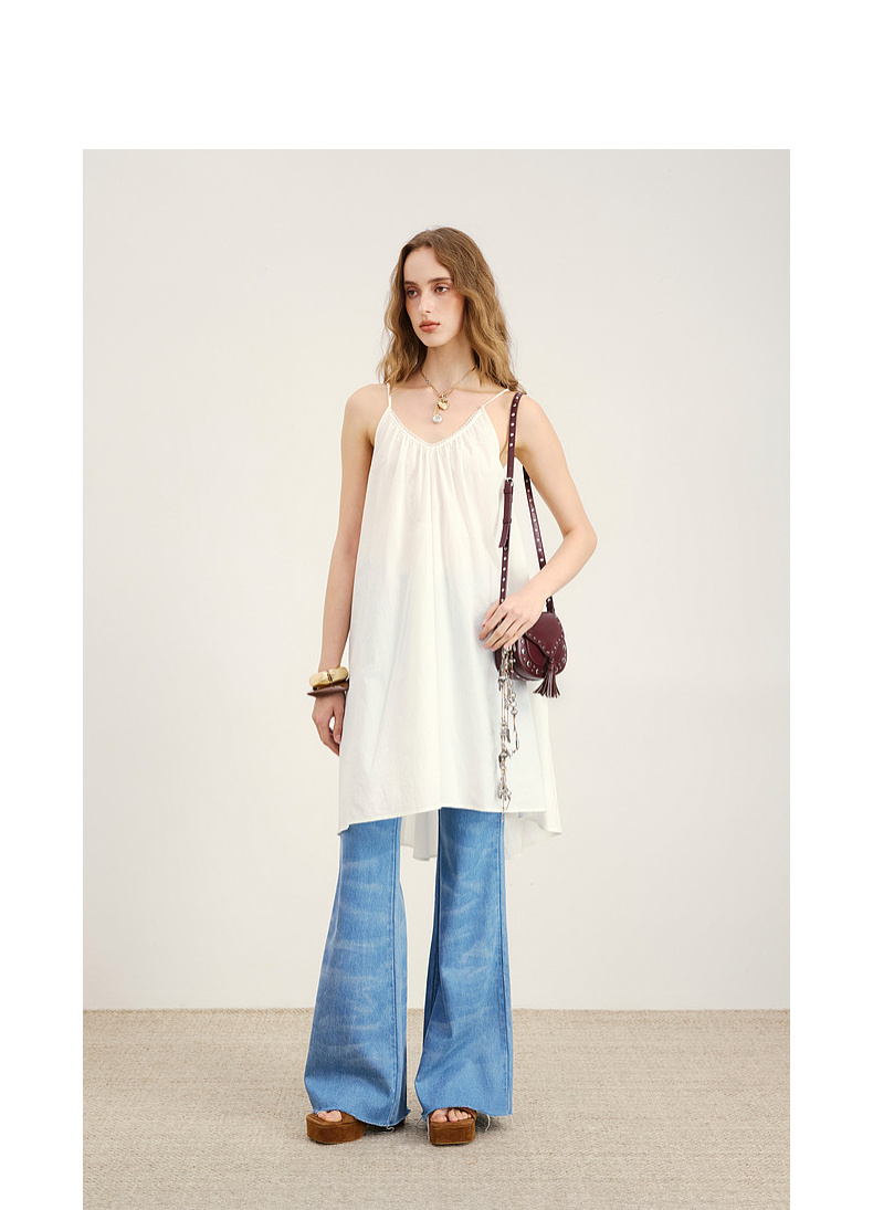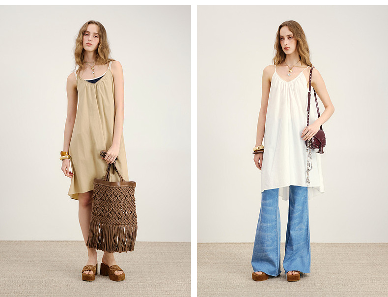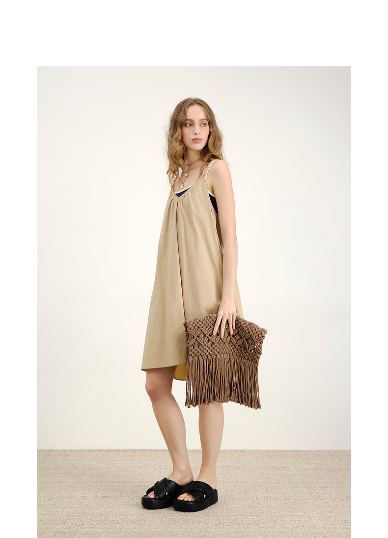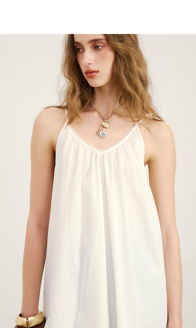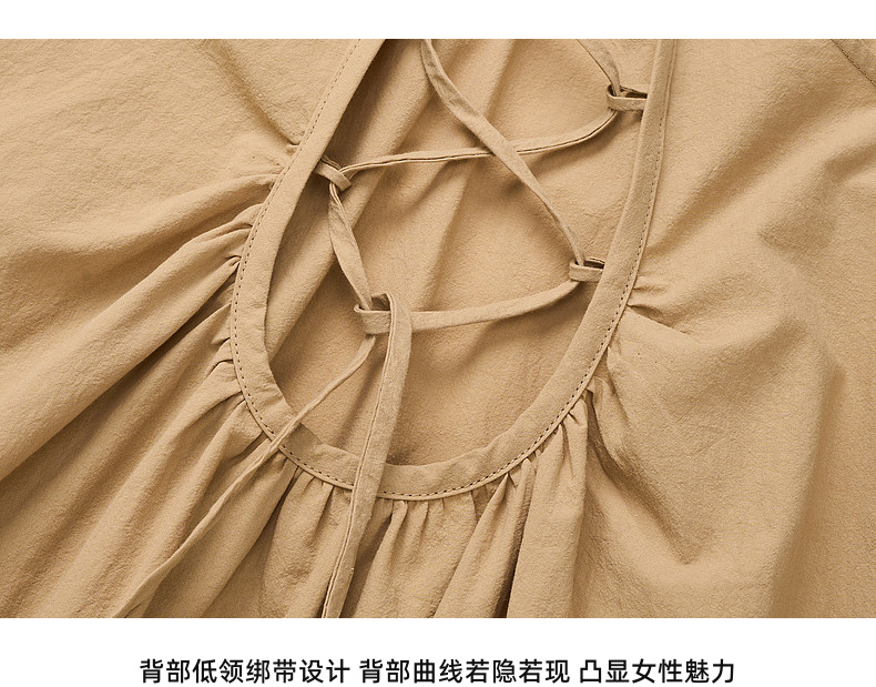 lost in echo2026年春夏新款时髦V领绑带抽褶A字宽松显瘦连衣裙女