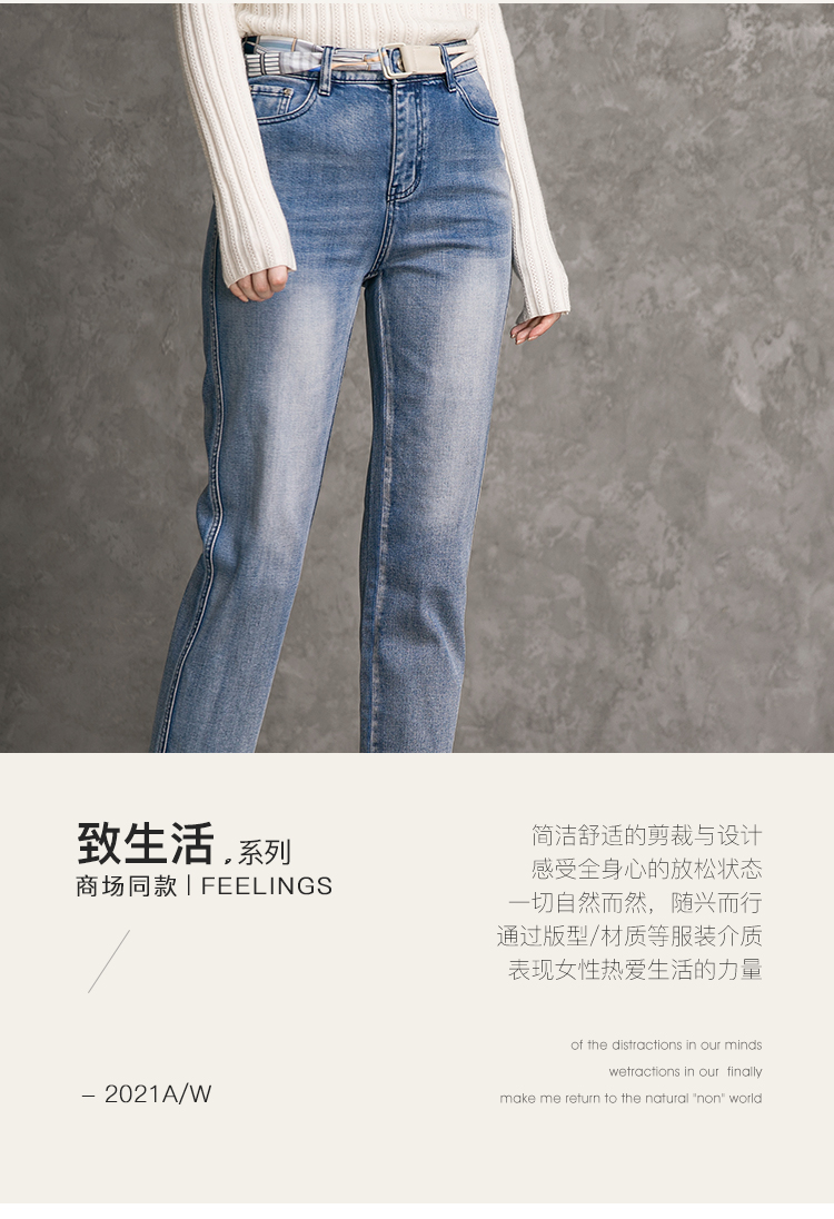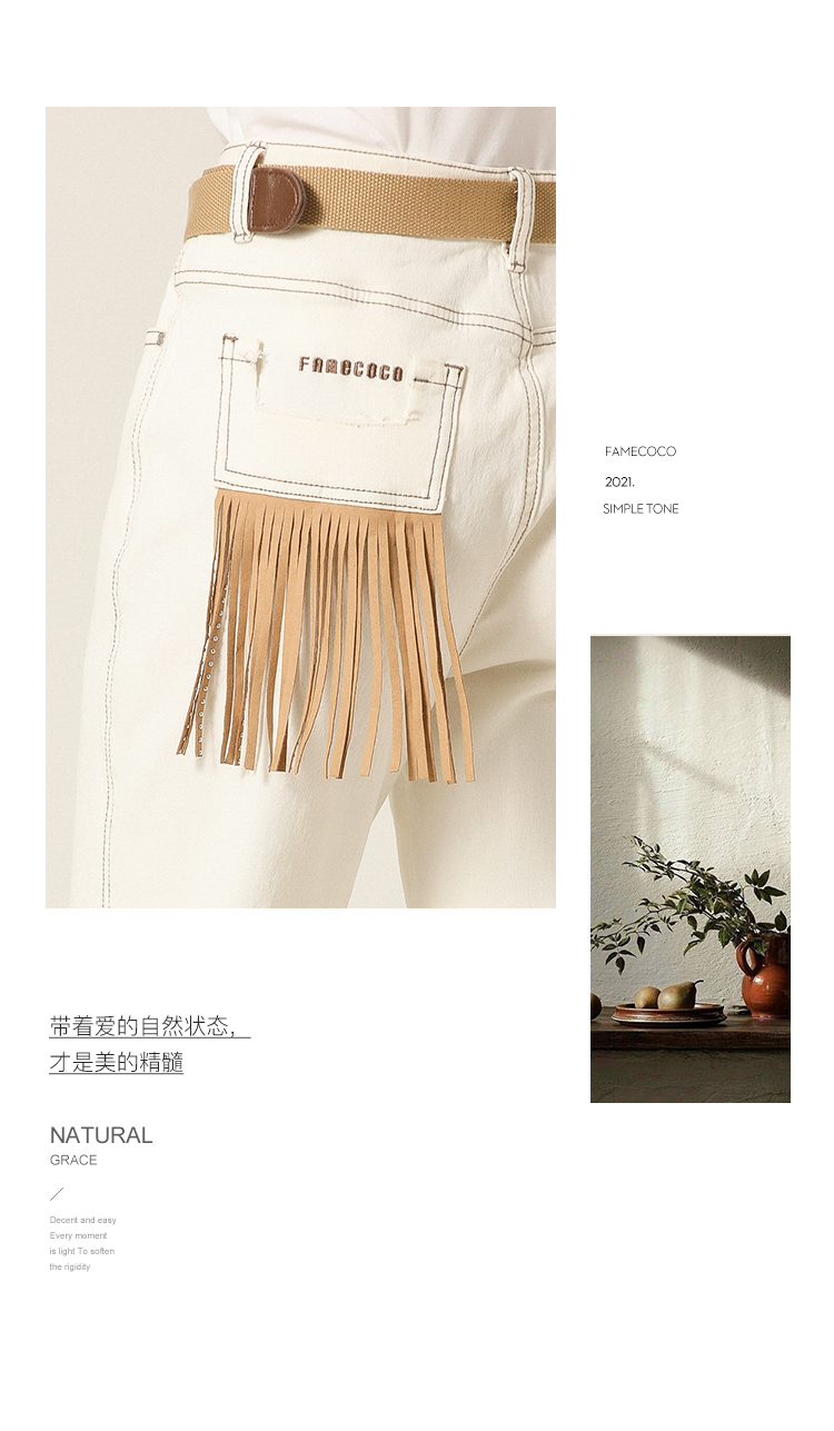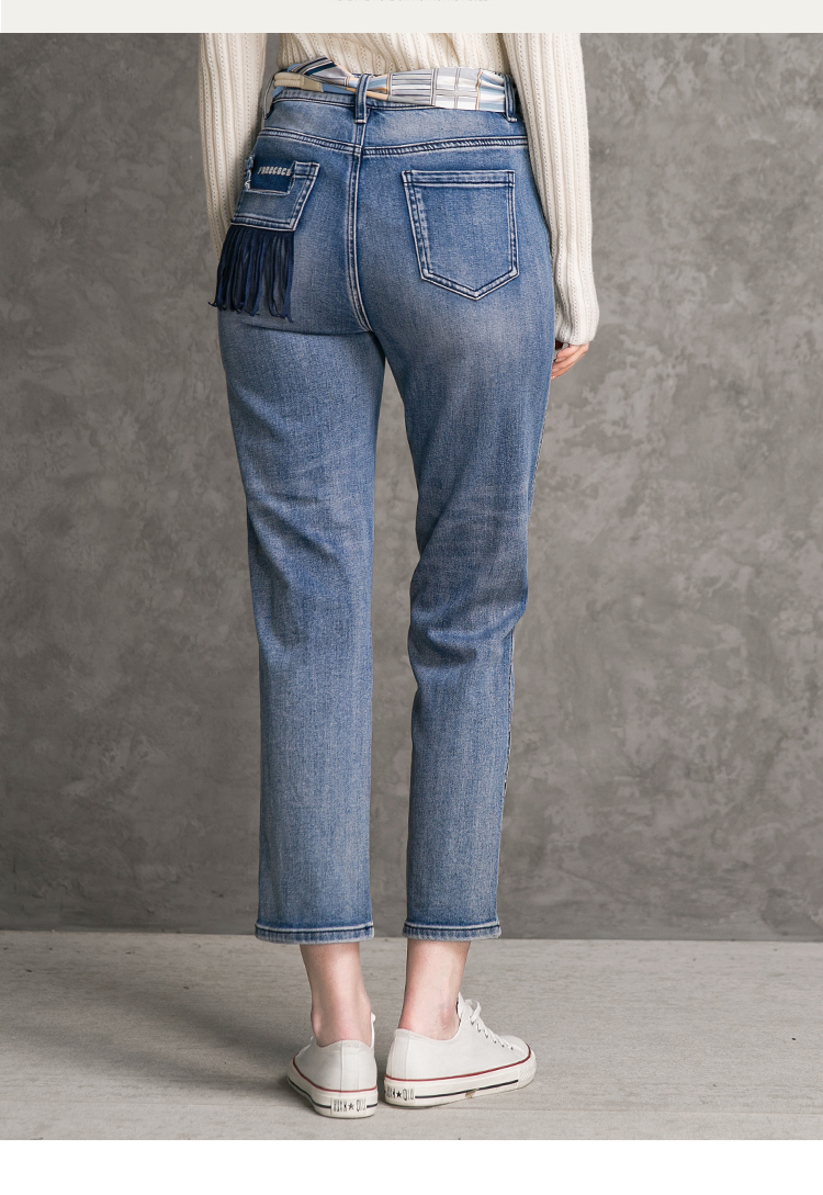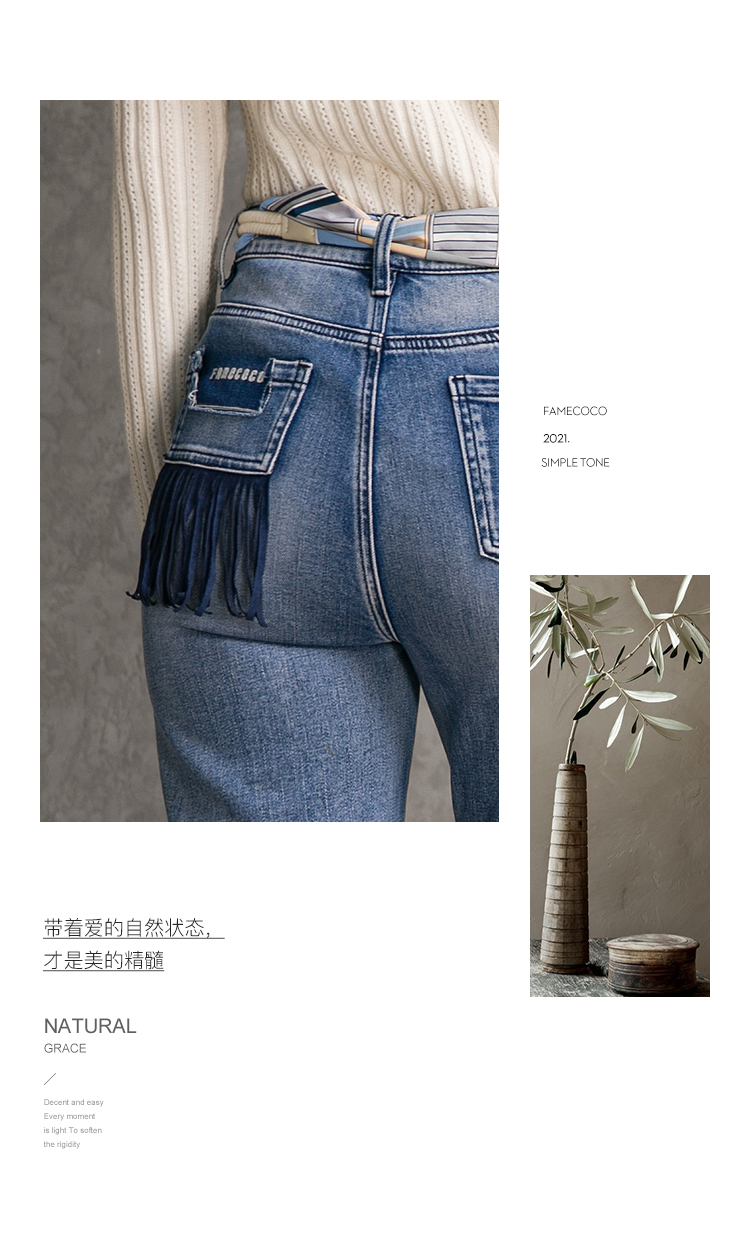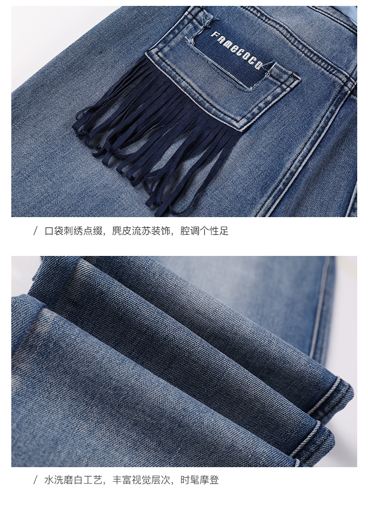 famecoco范可儿纯棉牛仔裤女秋季刺绣设计感直筒裤长裤D216GA303