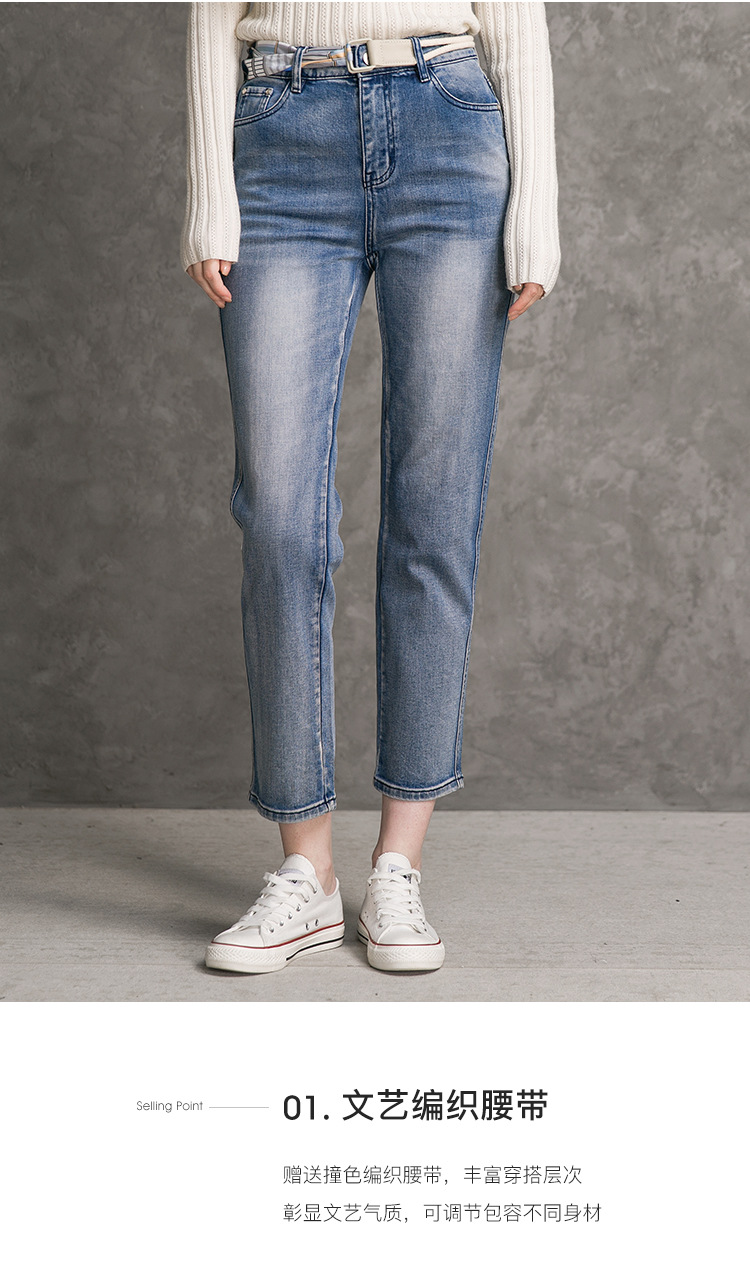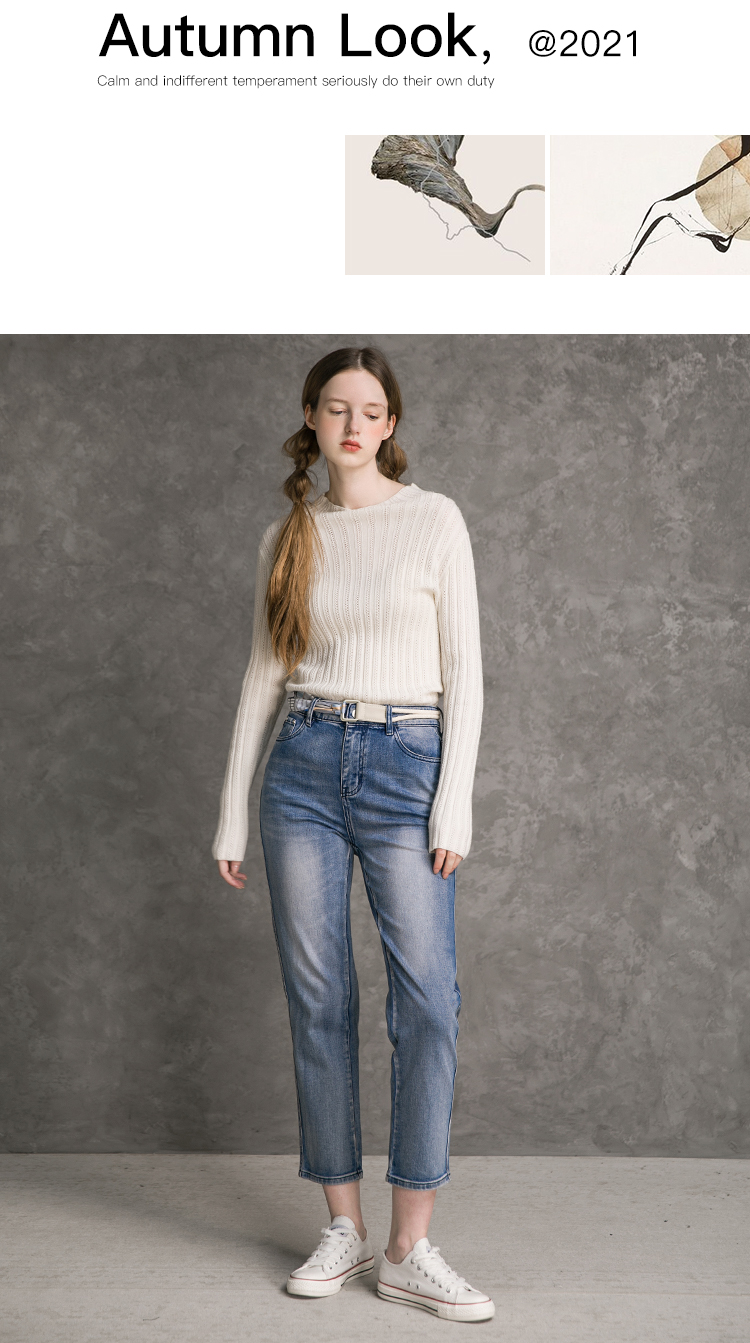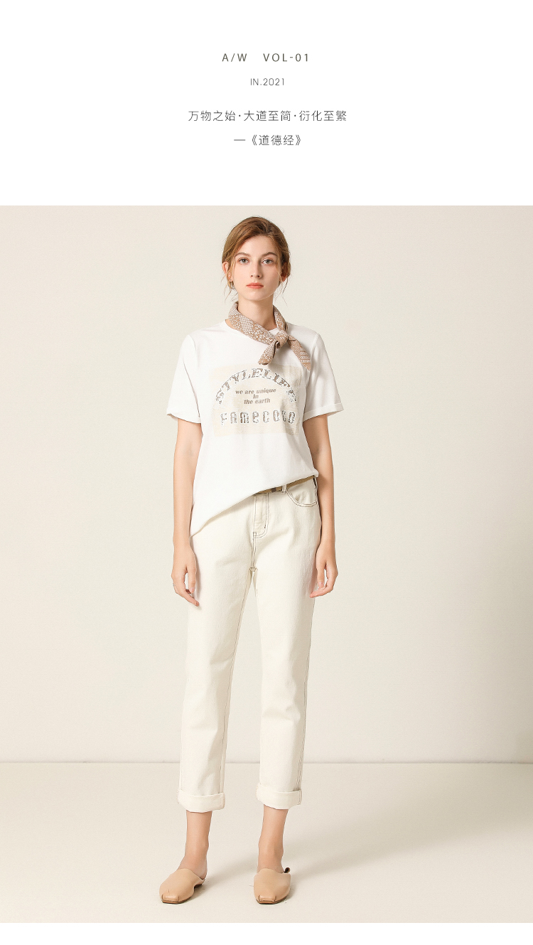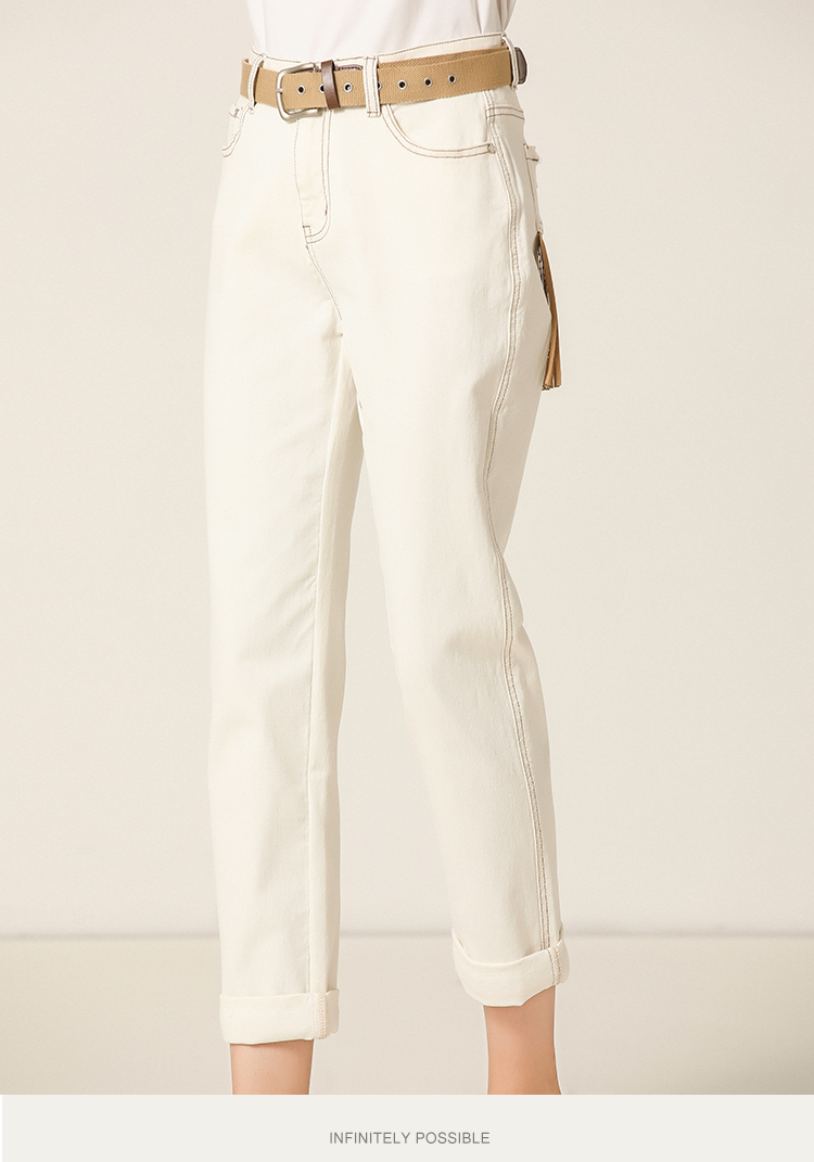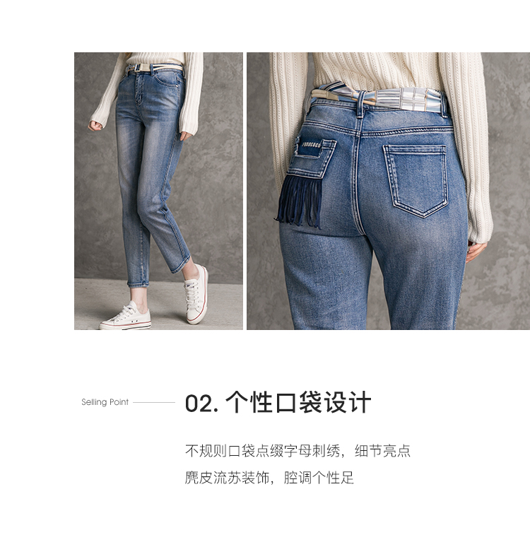 famecoco范可儿纯棉牛仔裤女秋季刺绣设计感直筒裤长裤D216GA303