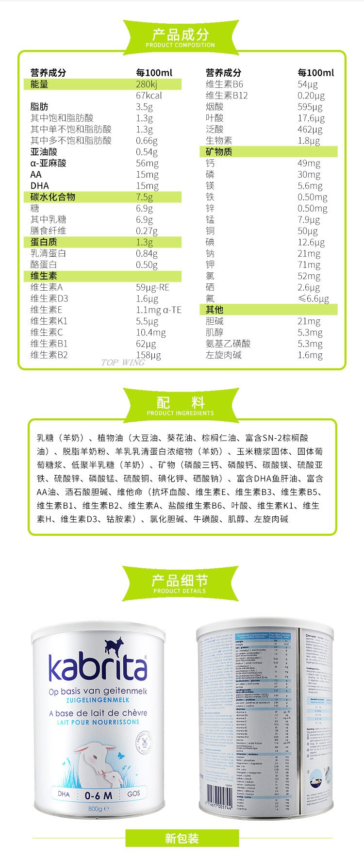 HNMG 荷兰Kabrita佳贝艾特羊奶粉1段(0-6个月)/800g
