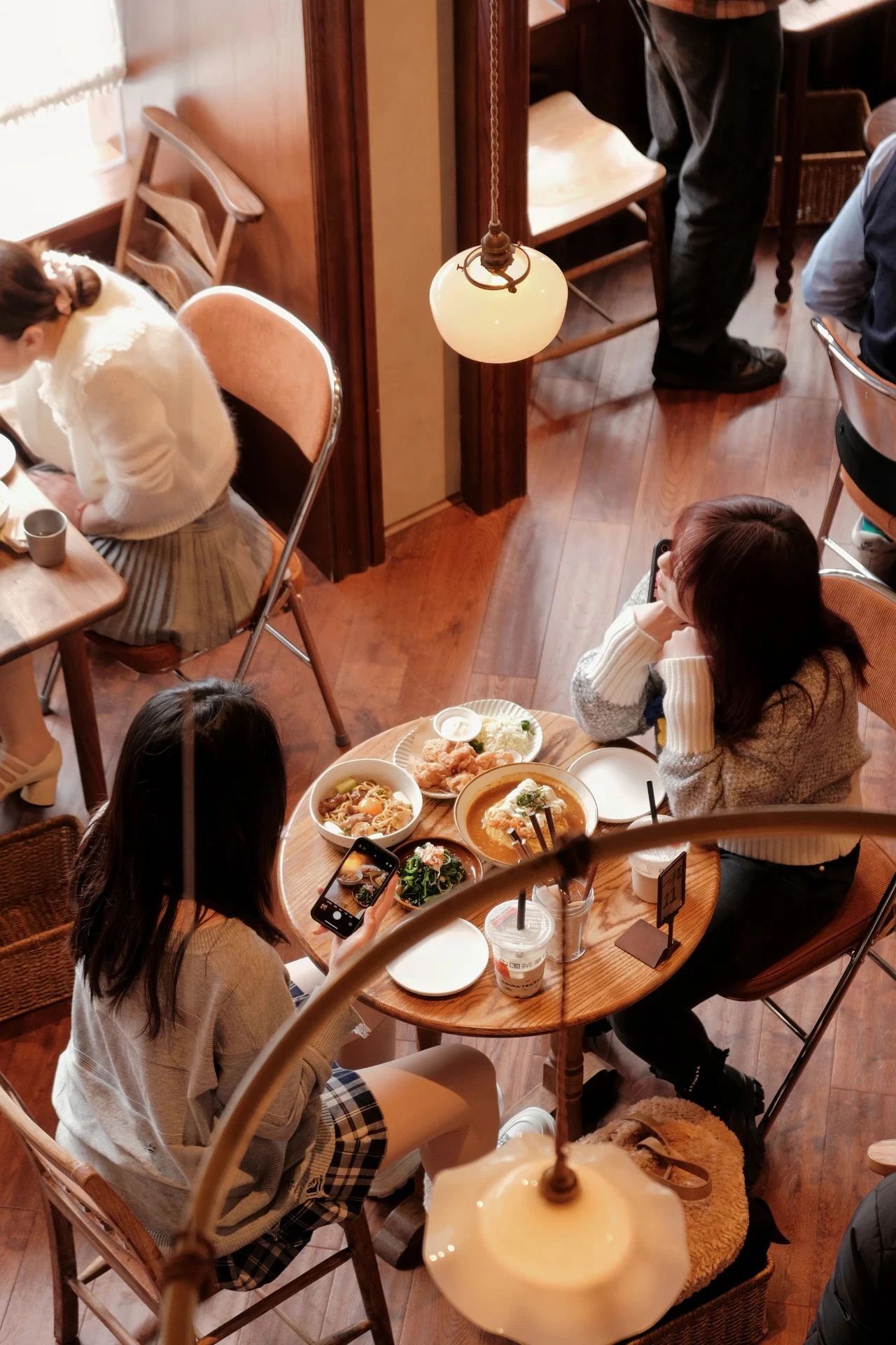 在静安寺回归的“魔都网红制造机”FINE,拥有2层楼的复古空间。手绘菜单、水泥墙面、原木桌椅、圆形吊灯…每一个细节都是日式温馨小家的感觉。