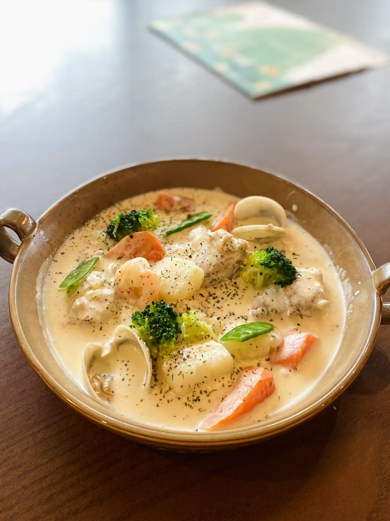 (鸡腿肉/土豆/胡萝卜/虾仁/蛤蜊/牛奶/奶油)