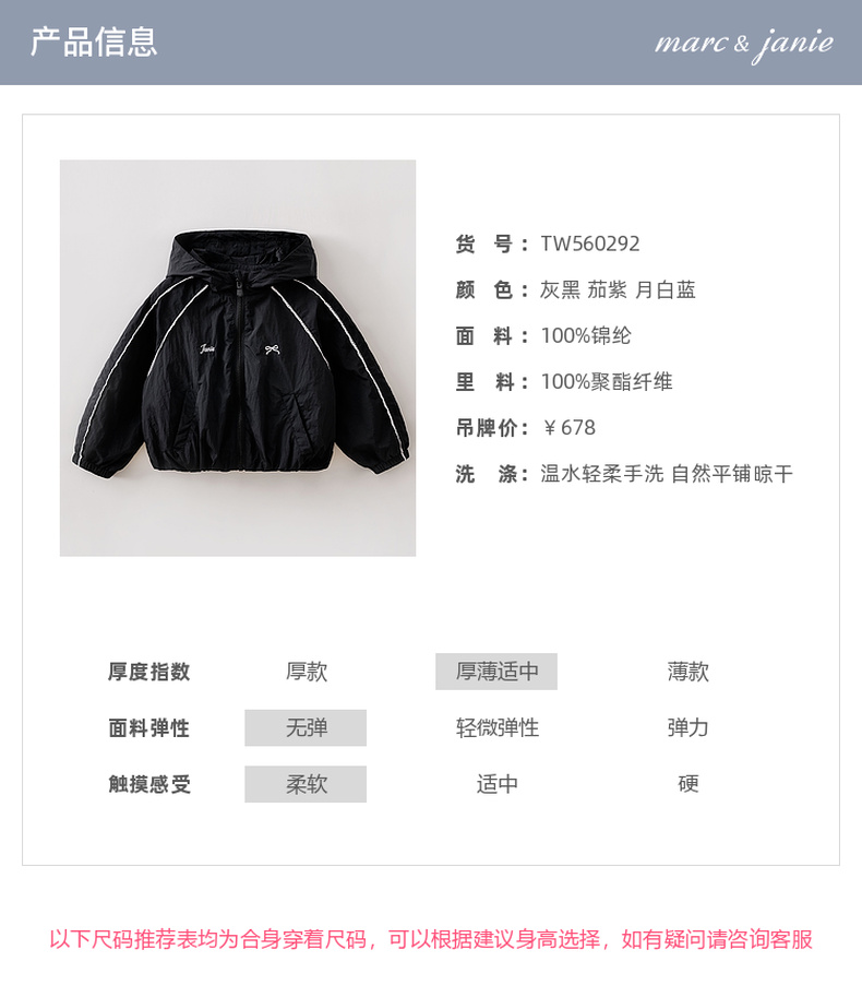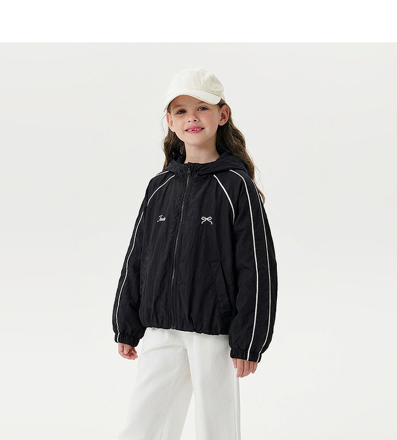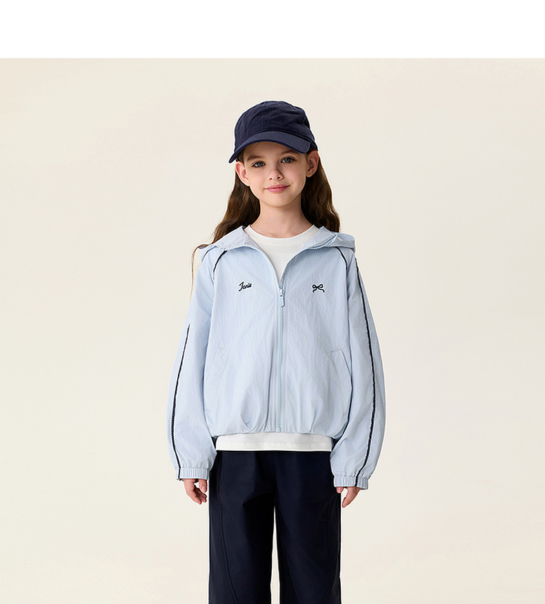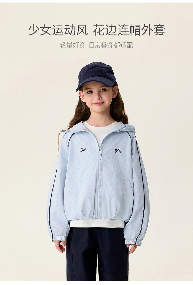马克珍妮少女运动风女童花边连帽外套2026年春装新款560292