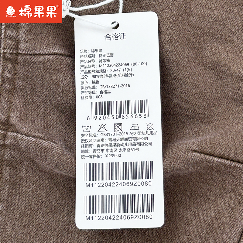 棉果果专柜同款春季新品男童女童斜纹水洗棉背带裤M112204224069