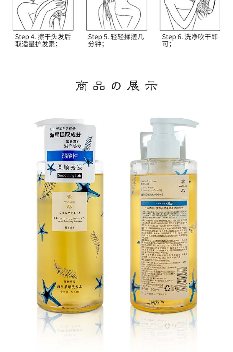 MATLEE/蜜梨海洋洗发水海星柔顺中性发质蓬松深层洁净清爽500ml