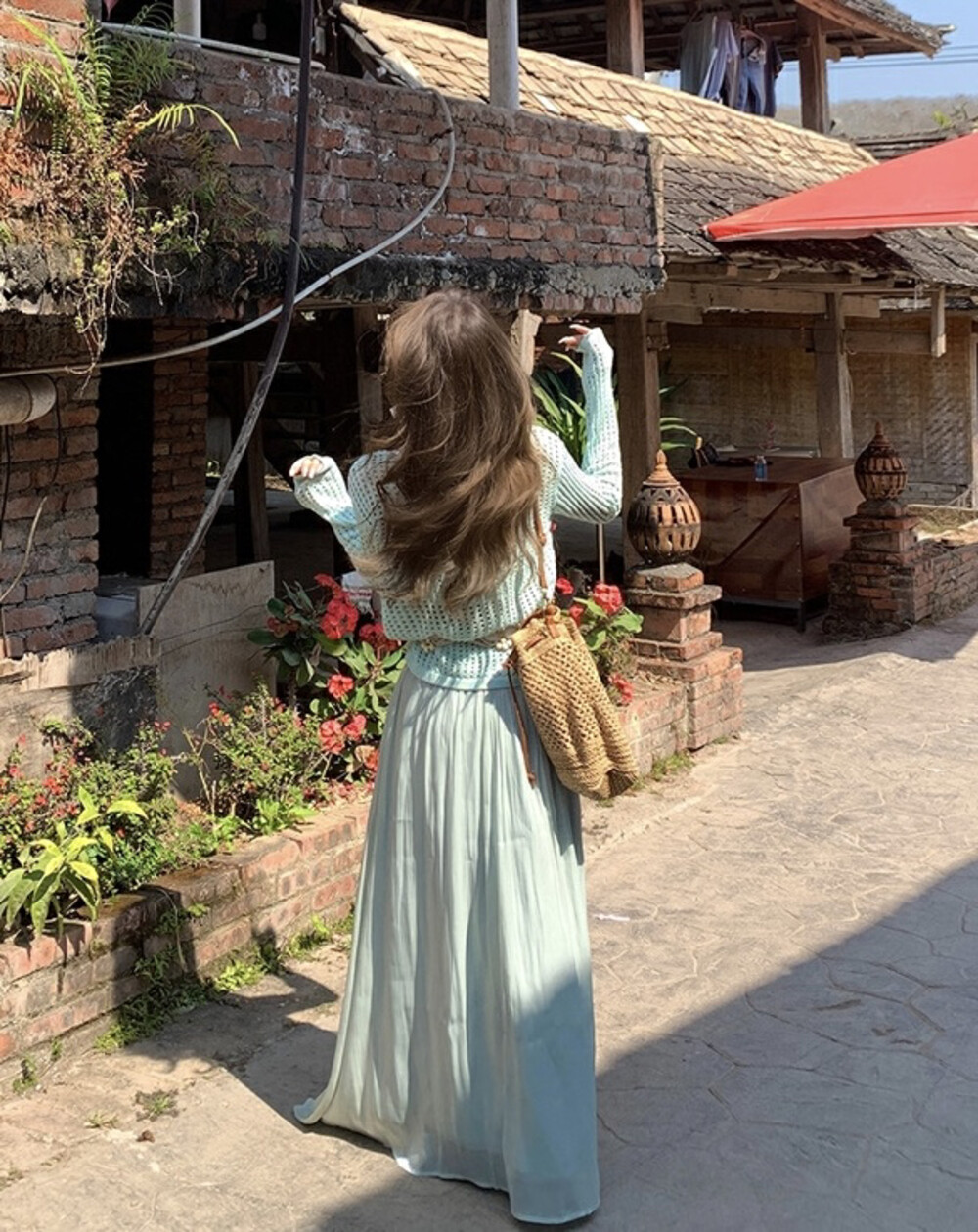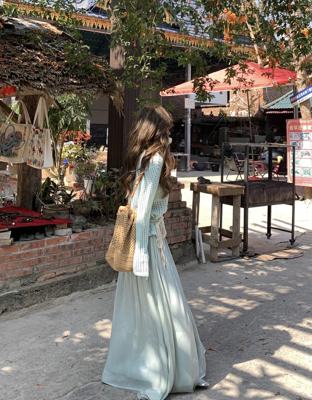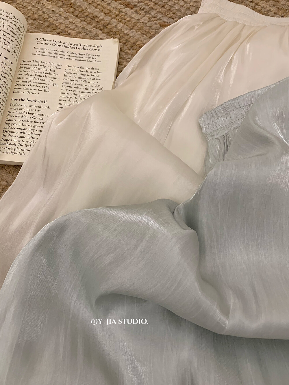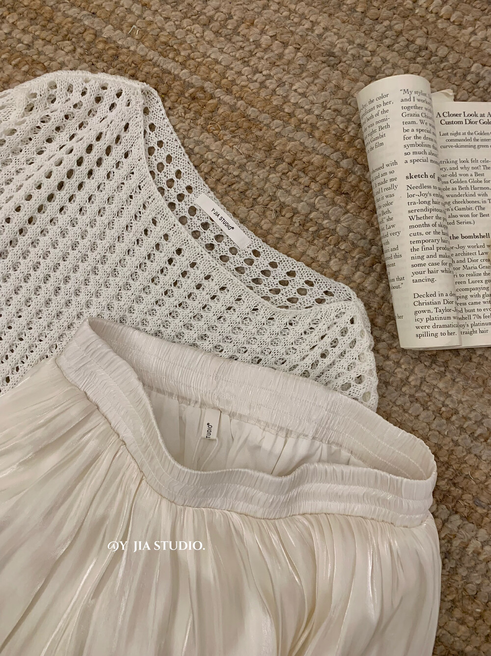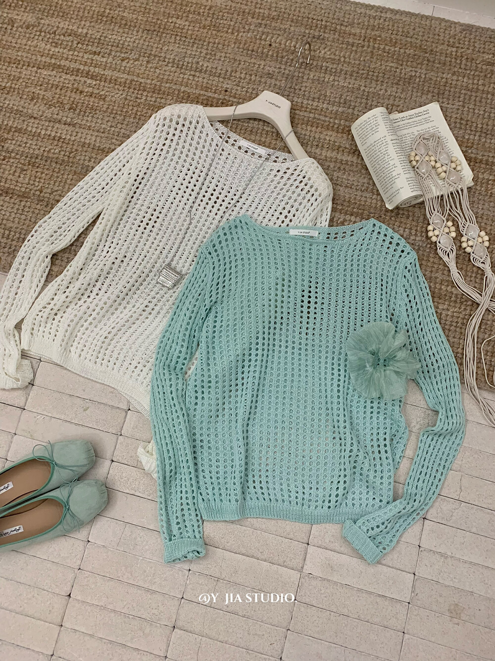 【GZ】无忧购气质温柔流光感半身长纱裙+慵懒风镂空防晒针织衫套装(配腰带)5576-5#(截单后7天发货)