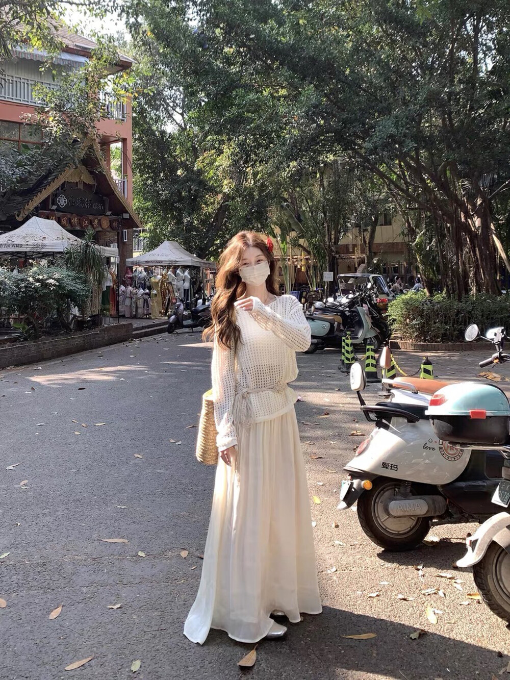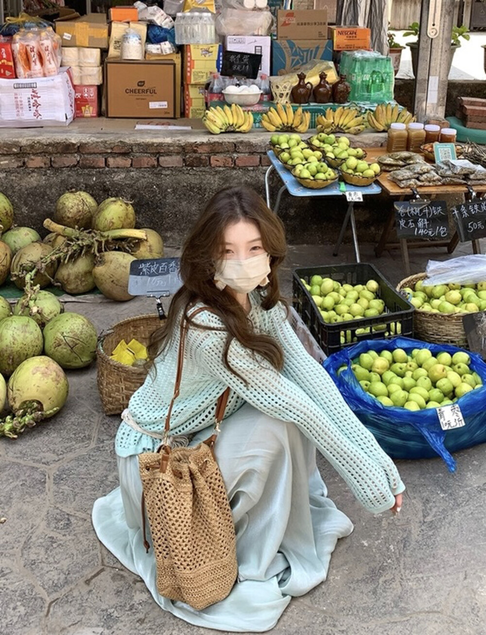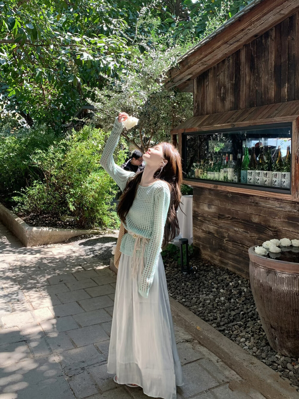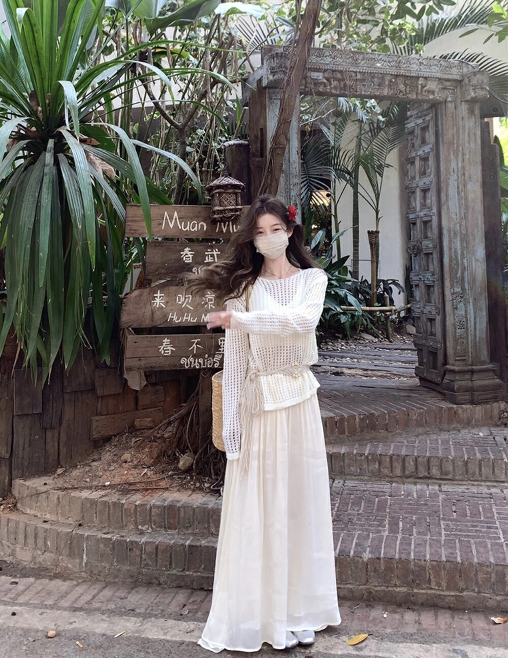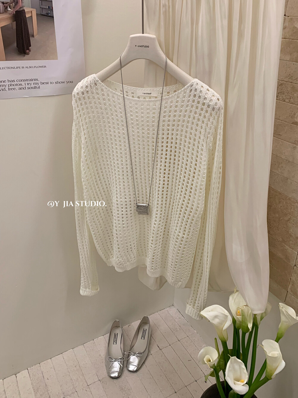 【GZ】无忧购气质温柔流光感半身长纱裙+慵懒风镂空防晒针织衫套装(配腰带)5576-5#(截单后7天发货)