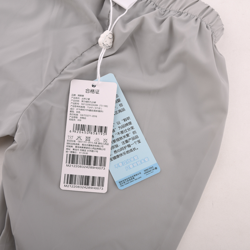 棉果果夏季新品男童防晒速干爽滑弹力梭织九分裤M212208324289