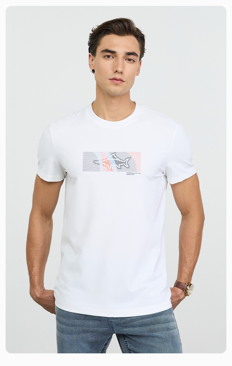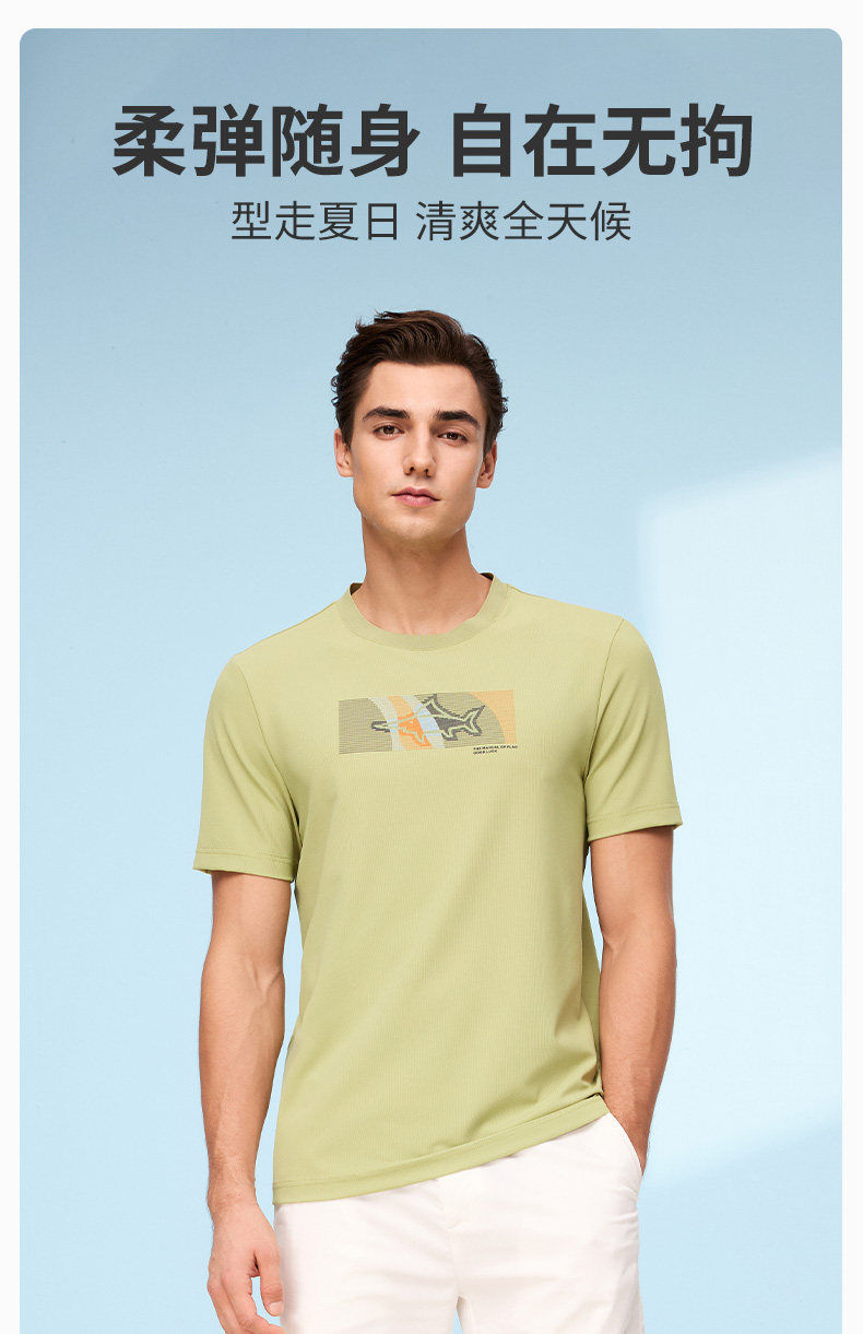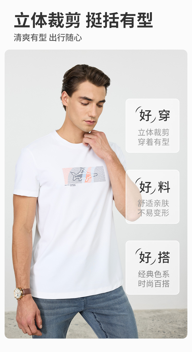 【凉感抑菌】德鲨短袖圆领T恤男2026夏季新款休闲印花百搭打底衫