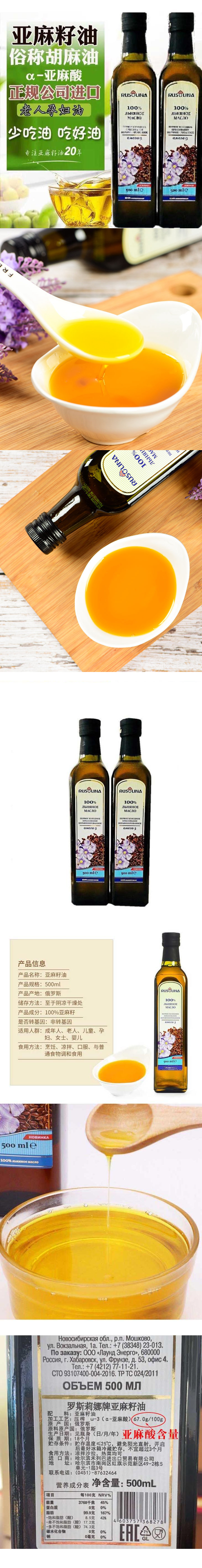 罗斯莉娜亚麻籽油500ml/瓶俄罗斯进口