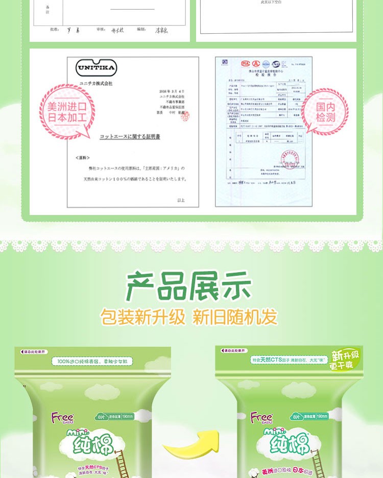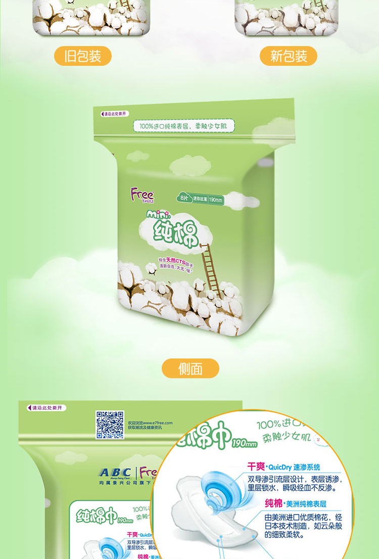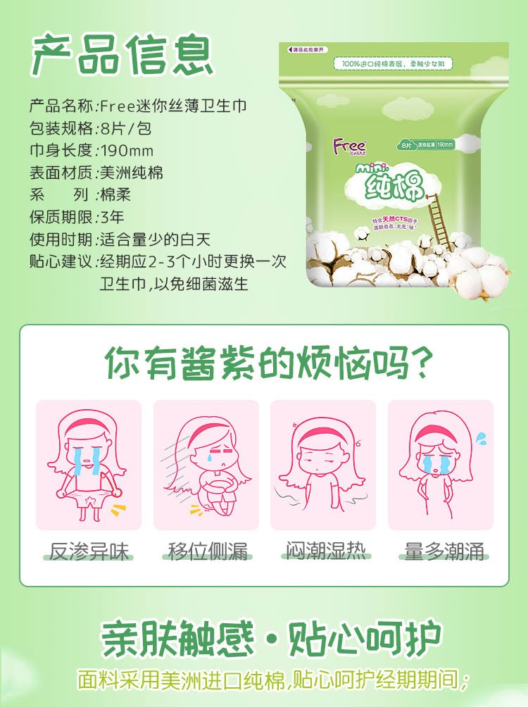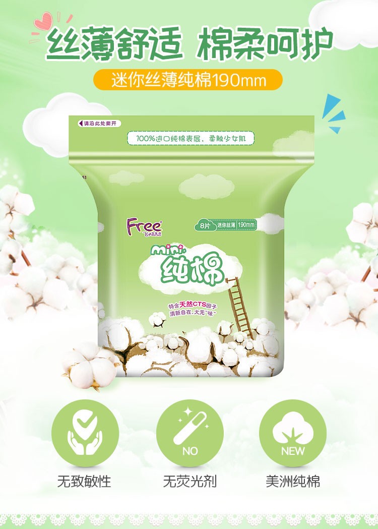 【亚欧超市】Free飞迷你丝薄纯棉卫生巾190mm