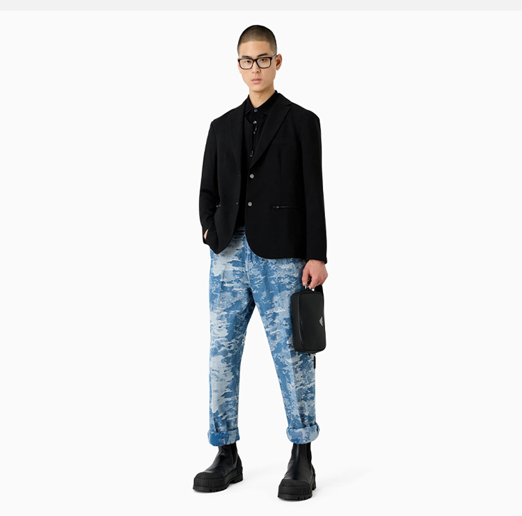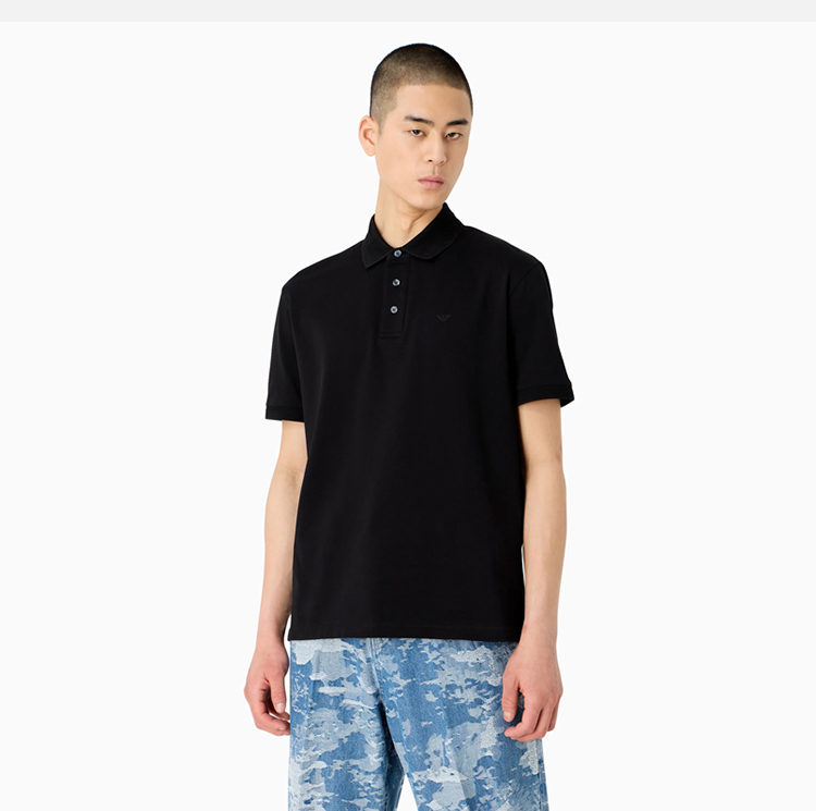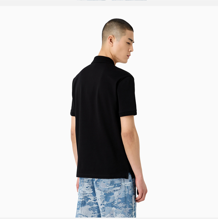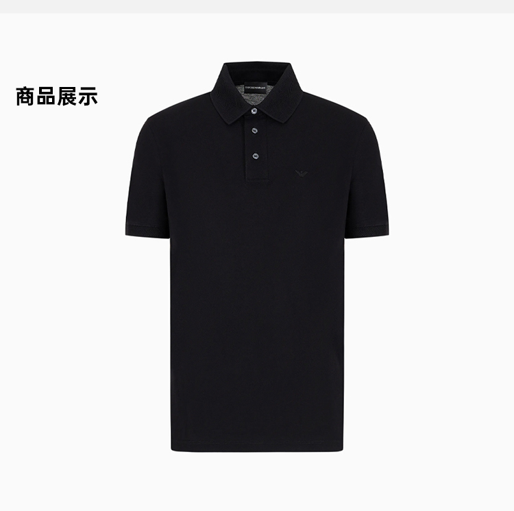 EMPORIO ARMANI 阿玛尼 男士带 V 形饰边的丝光珠地网眼 Polo 衫 黑色 3D1FF2 1JTKZ 0999