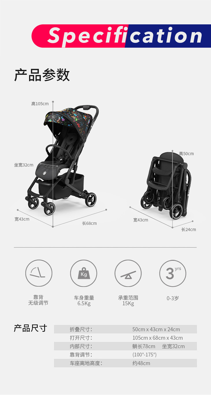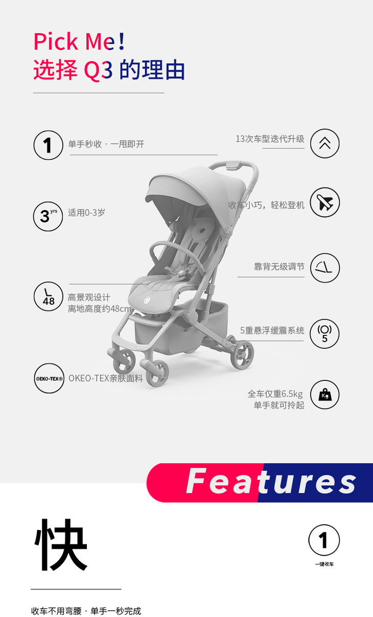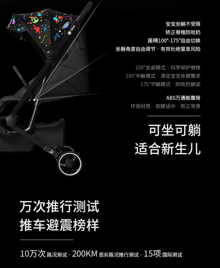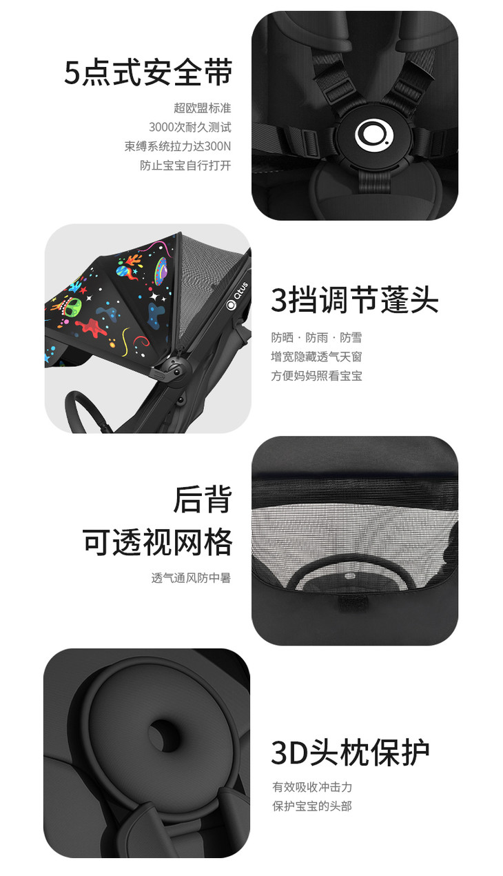 (超值)Quintus/Qtus昆塔斯婴儿推车Q3小怪兽一键折叠轻便可坐躺婴儿车