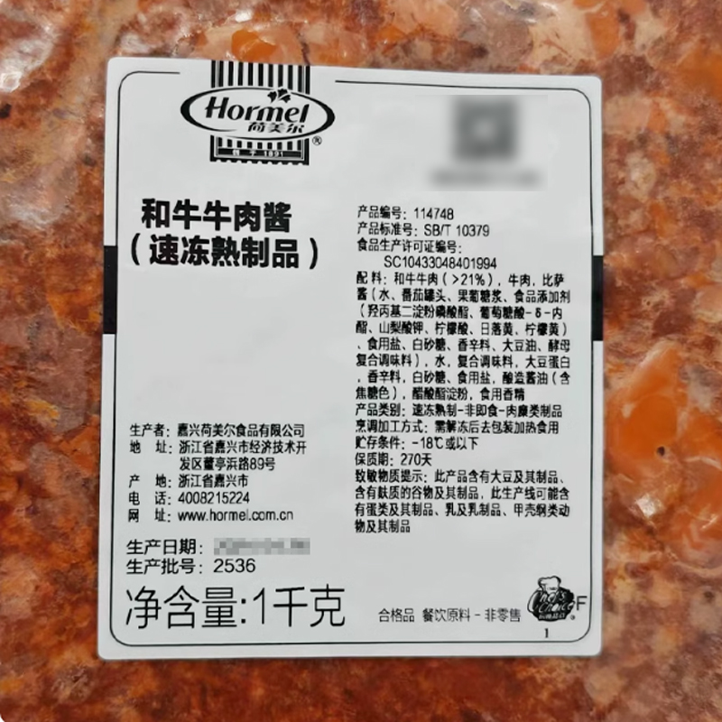 荷美尔和牛牛肉酱1kg(114748) 披萨意面酱拌面盖饭肉末酱调味料餐饮商用(顺丰发货)