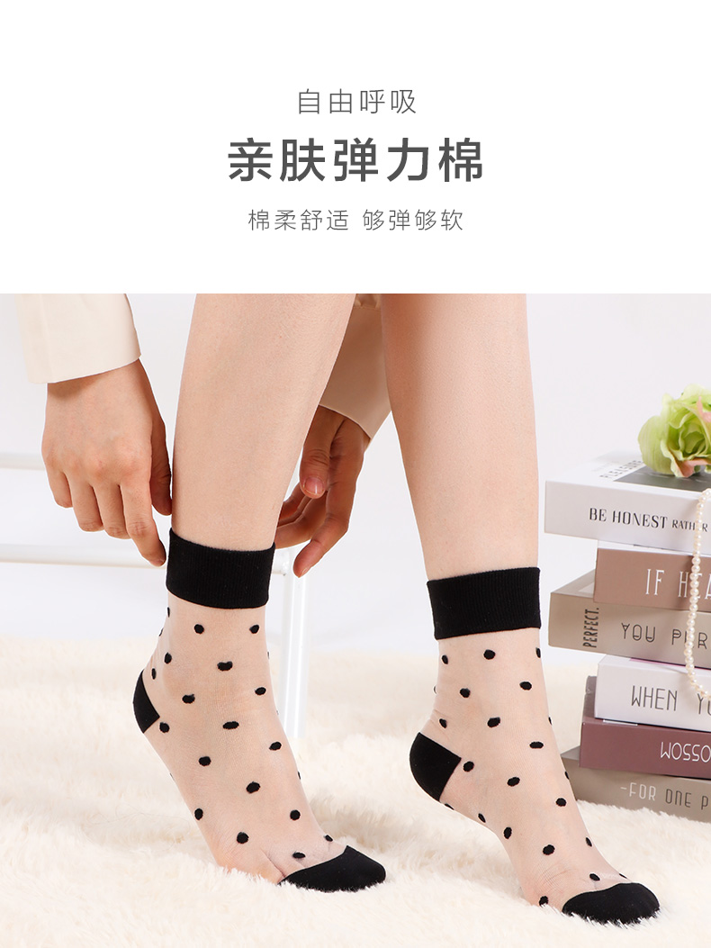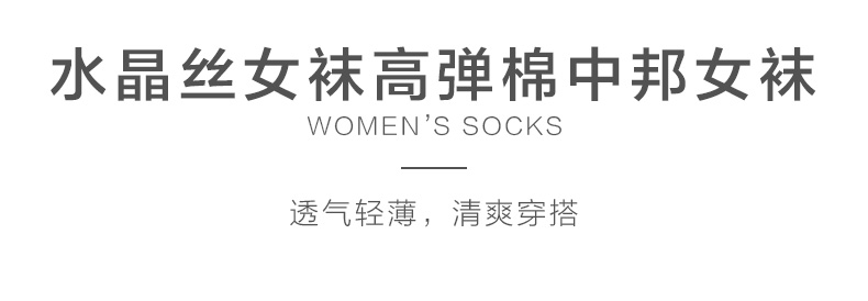 24春夏新女士中筒水晶丝透气轻薄高弹棉中邦女袜夏日短袜
