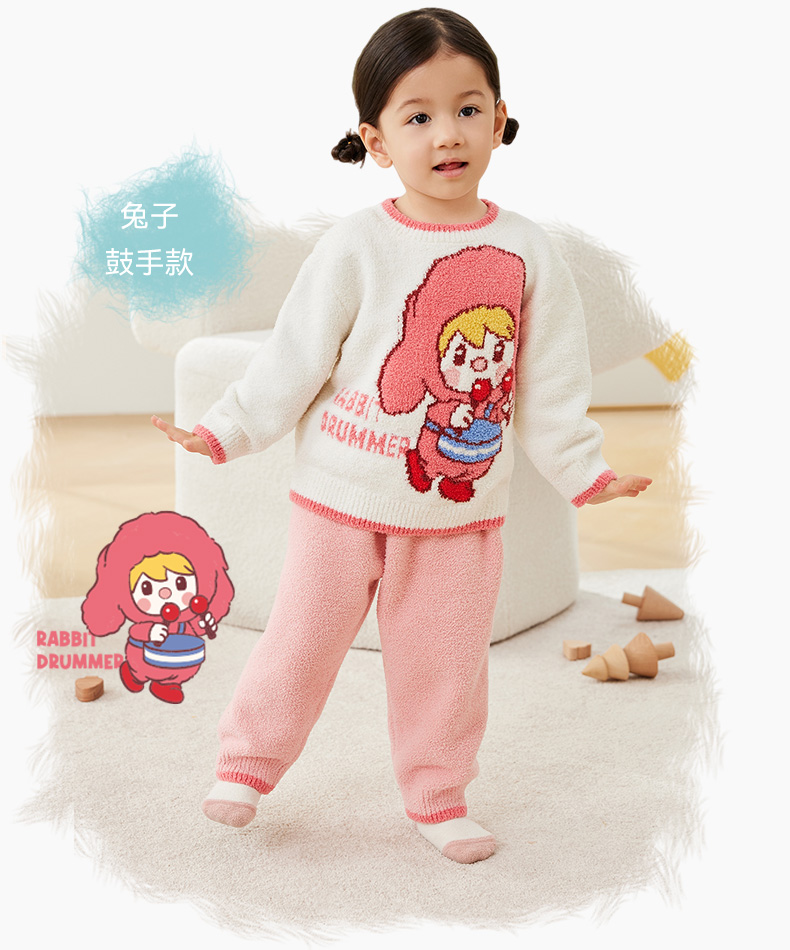 i-baby泡泡玛特联名高蓬松软羽毛纱圆领开襟恒温家居服套装