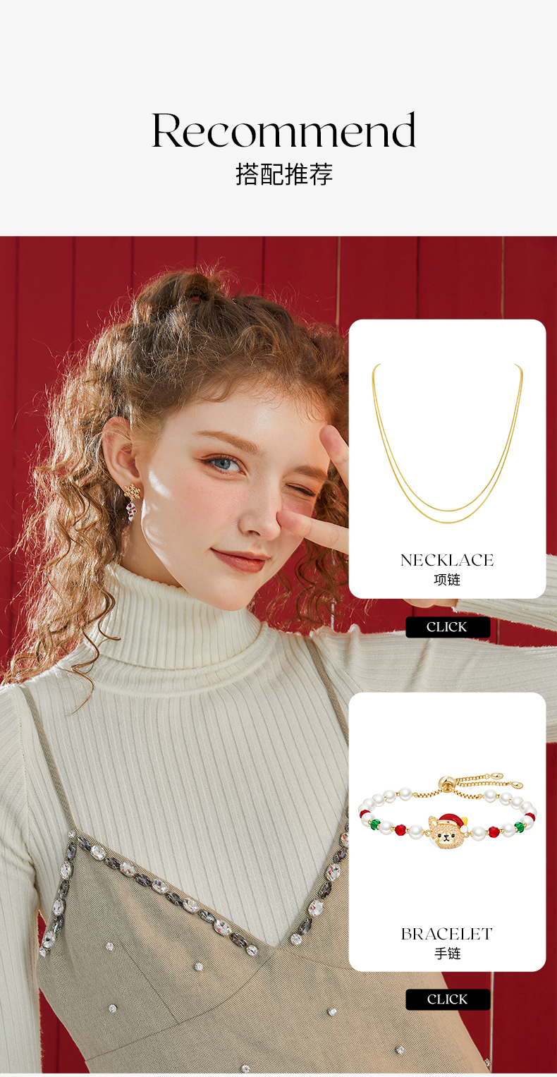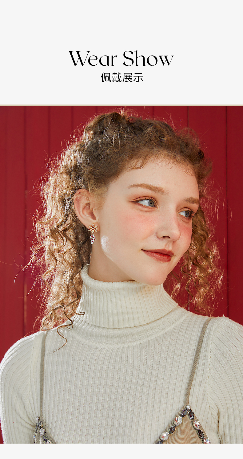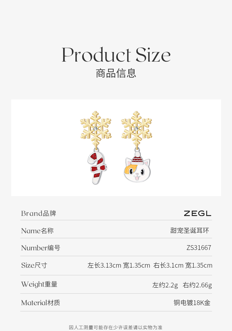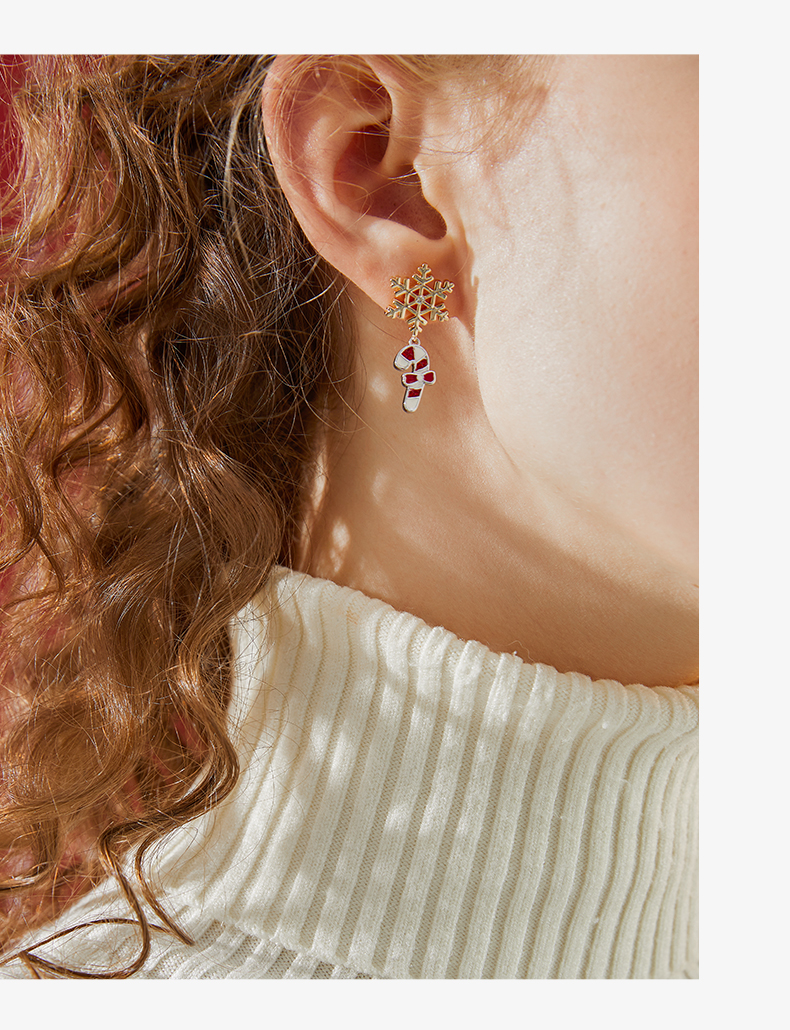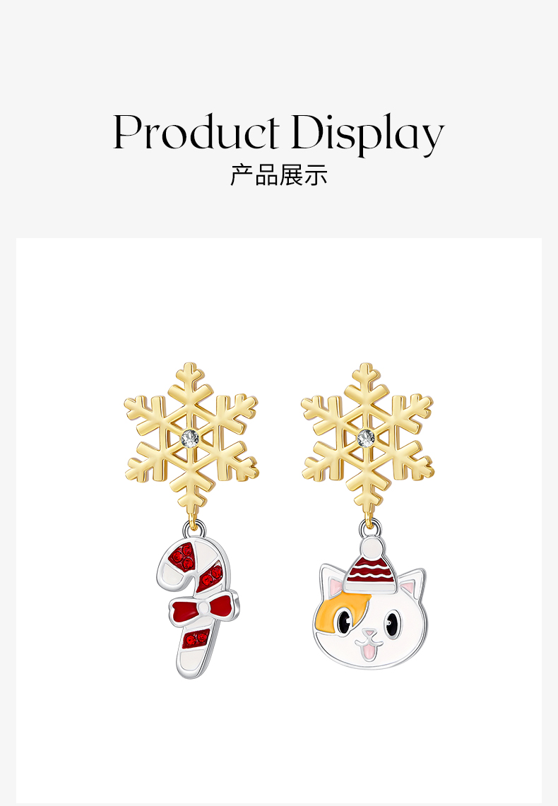 ZEGL圣诞系列雪花糖果耳环女2022年新款潮可爱猫咪耳钉秋冬耳饰品