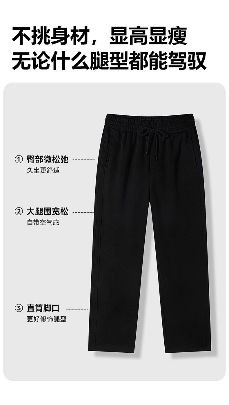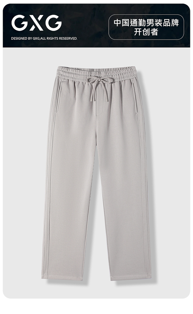 GXG男装26春季精梳华棉弹力舒适松紧腰系绳休闲阔腿裤男式直筒裤K&C