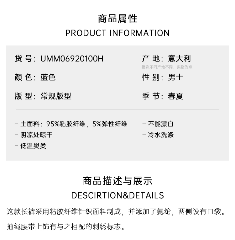 KITON 男士休闲运动裤 蓝色 UMM06920100H
