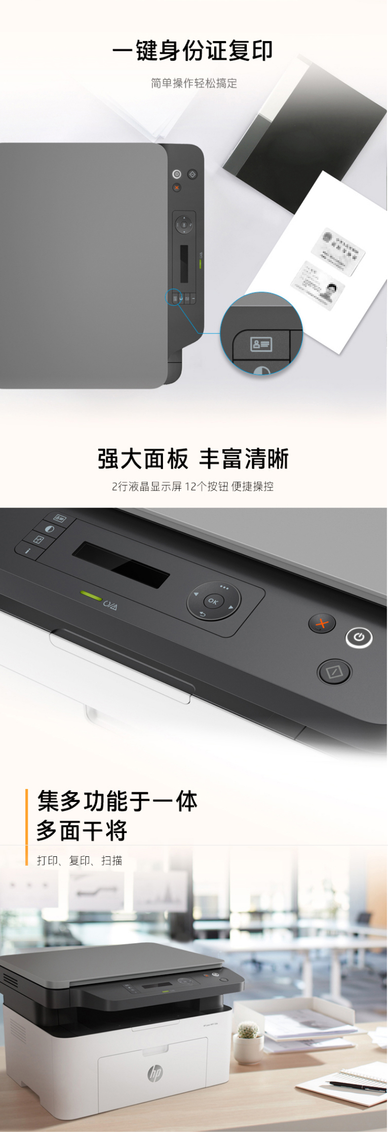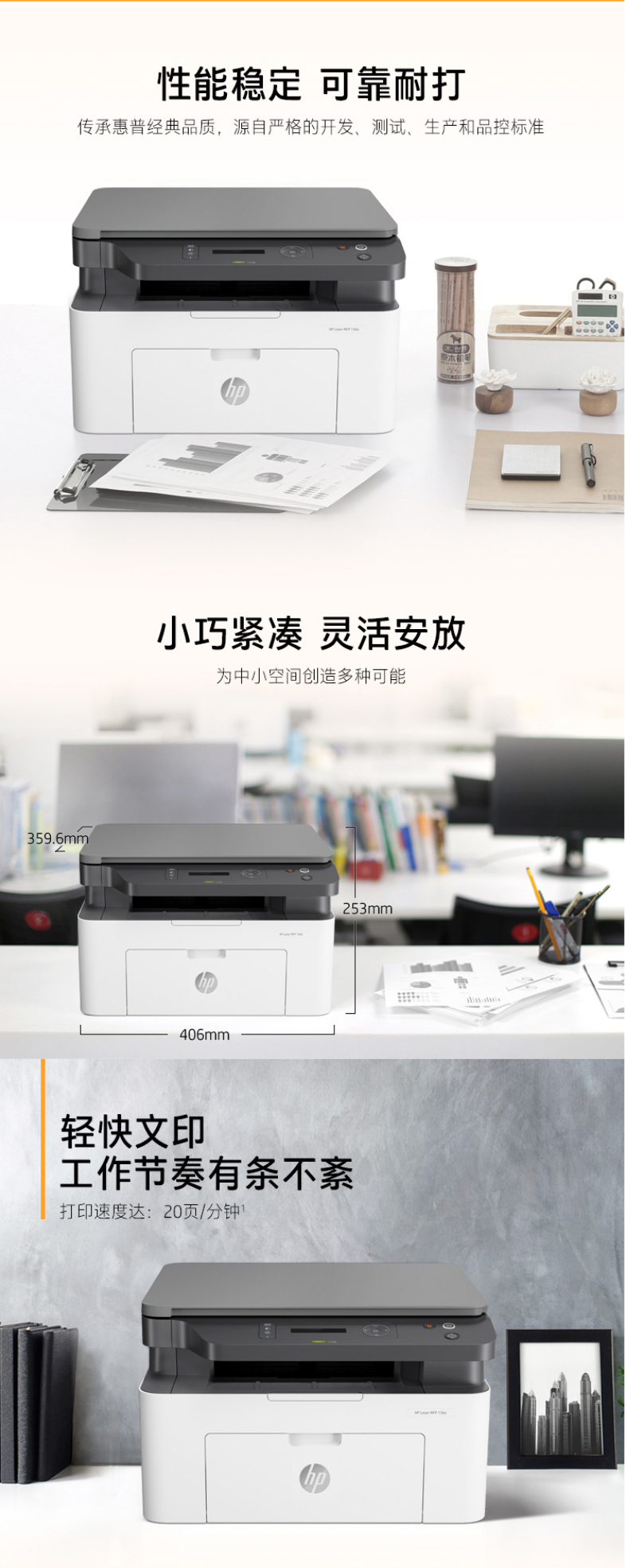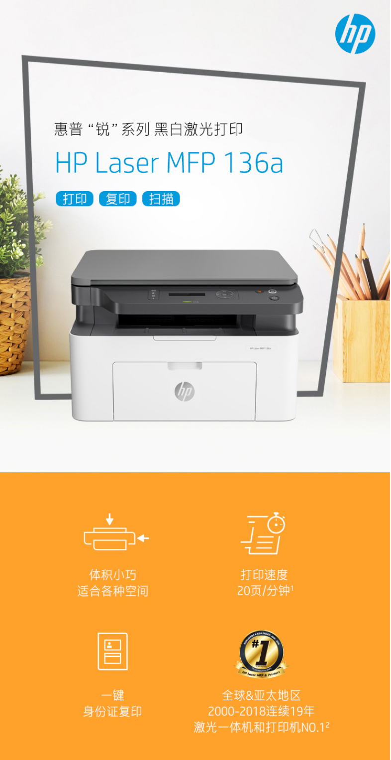 惠普(HP)Laser MFP 136a A4黑白锐系列激光多功能一体机 usb打印 复印 扫描