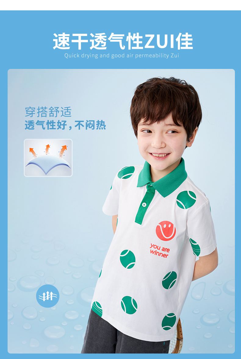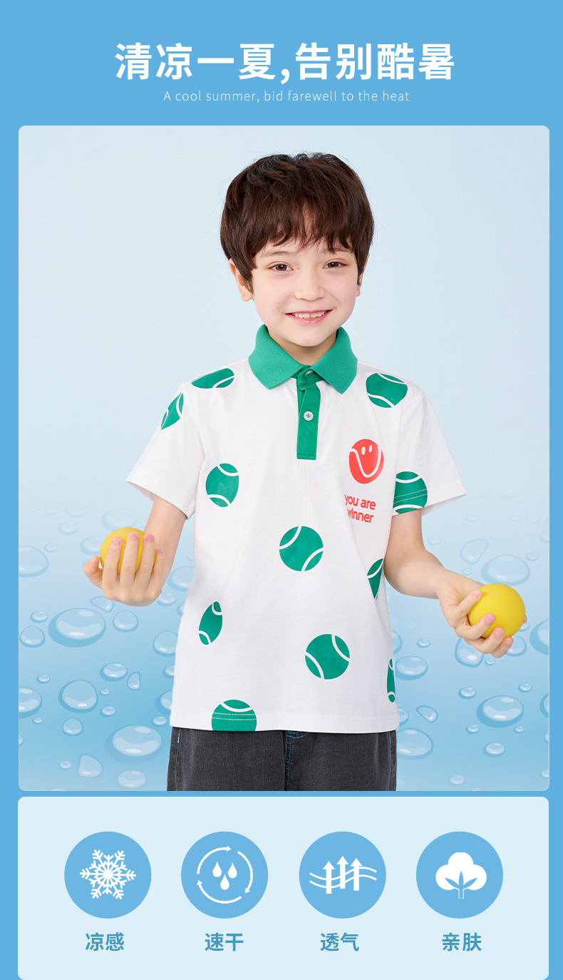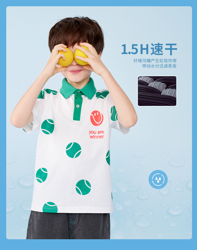 mettekids男童短袖t恤儿童夏季凉感透气polo衫童装中大童休闲上衣
