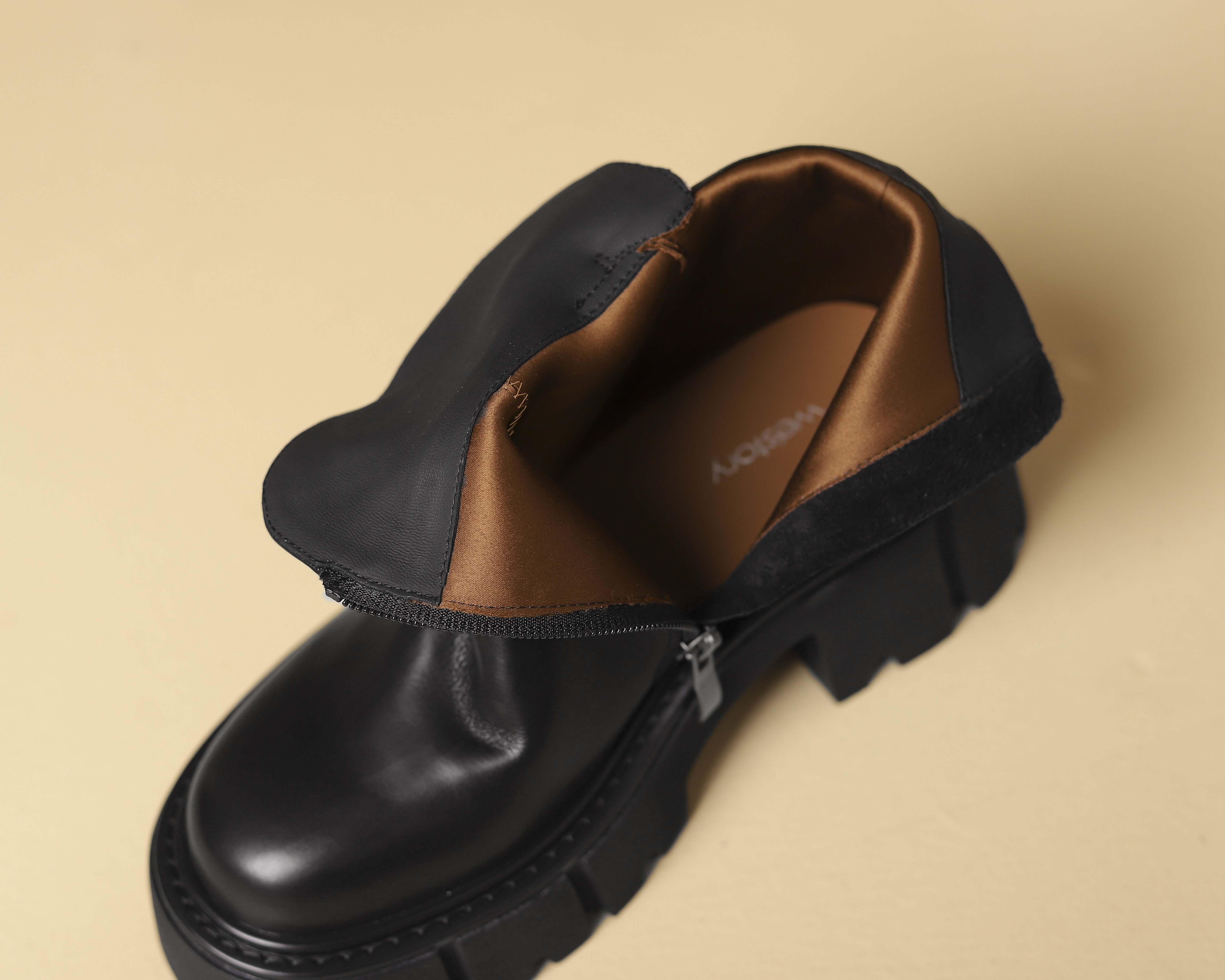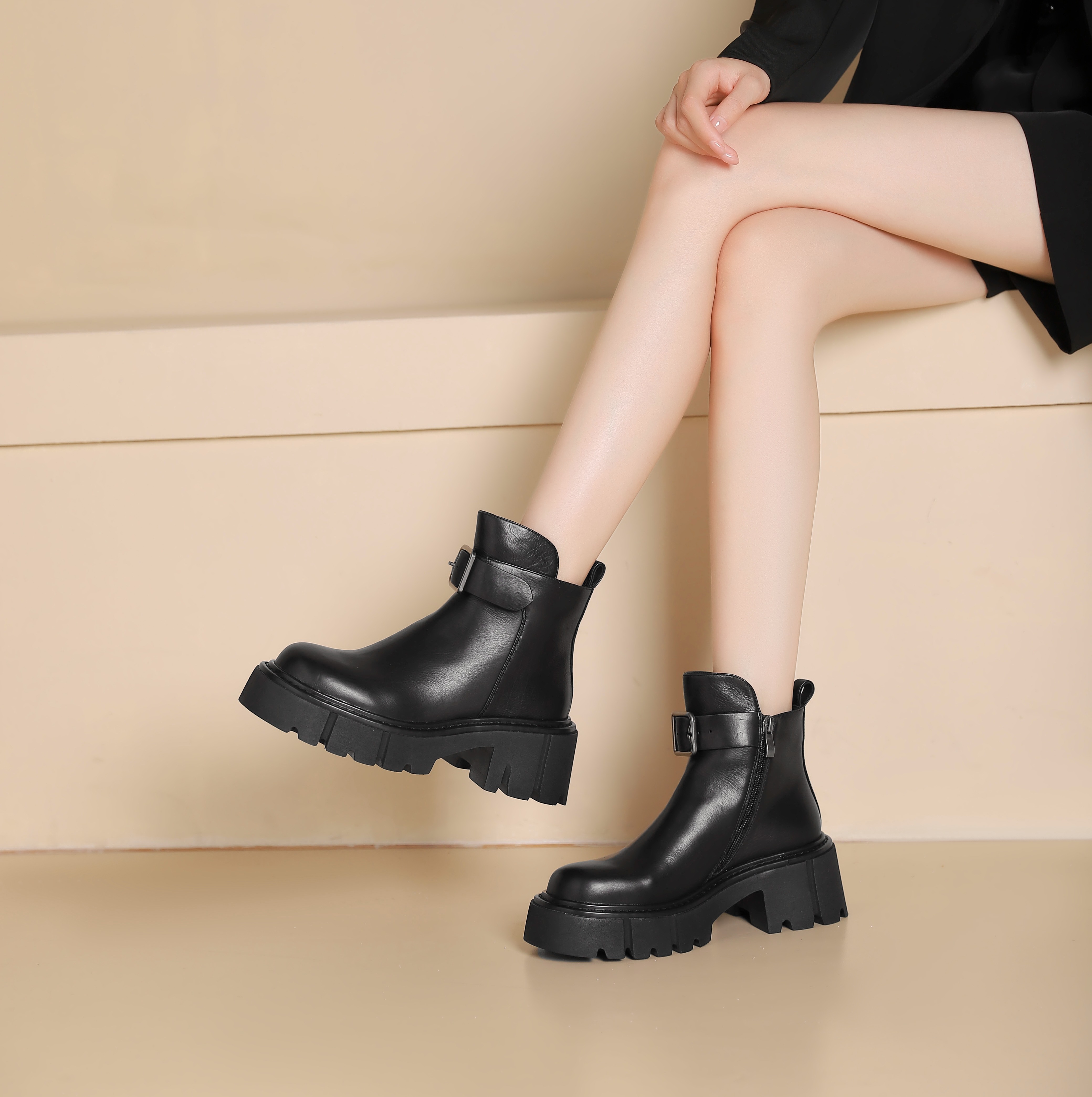 westory2024年秋冬新款优雅风厚底高跟小圆头百搭短靴马丁靴W24DS84491