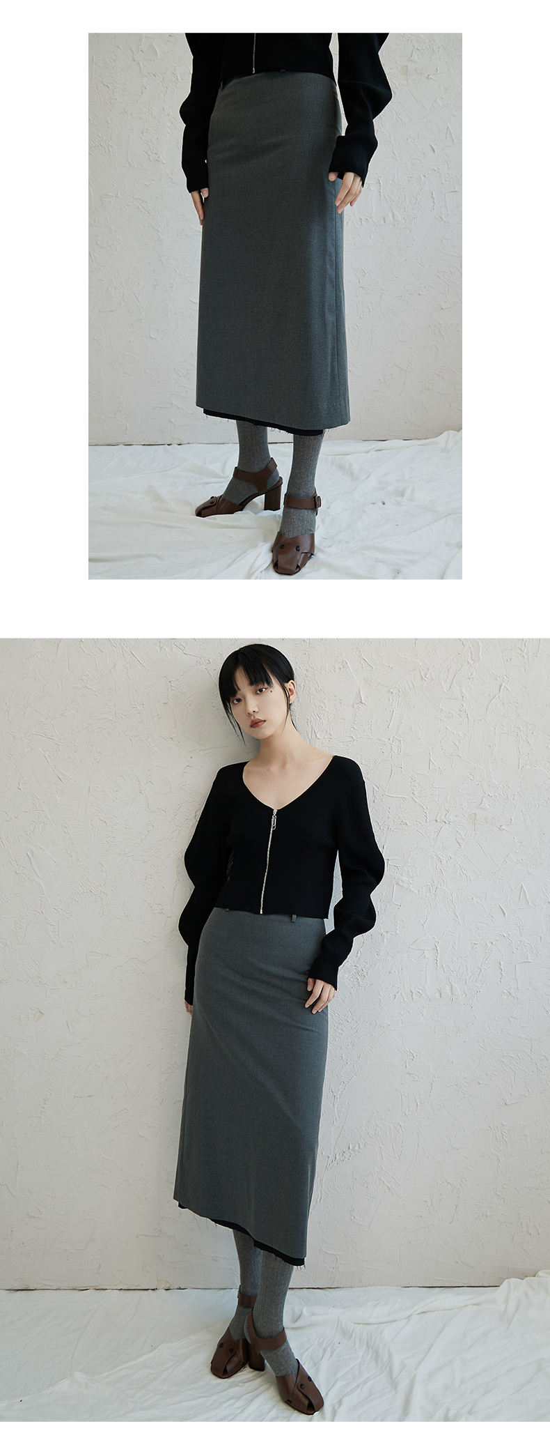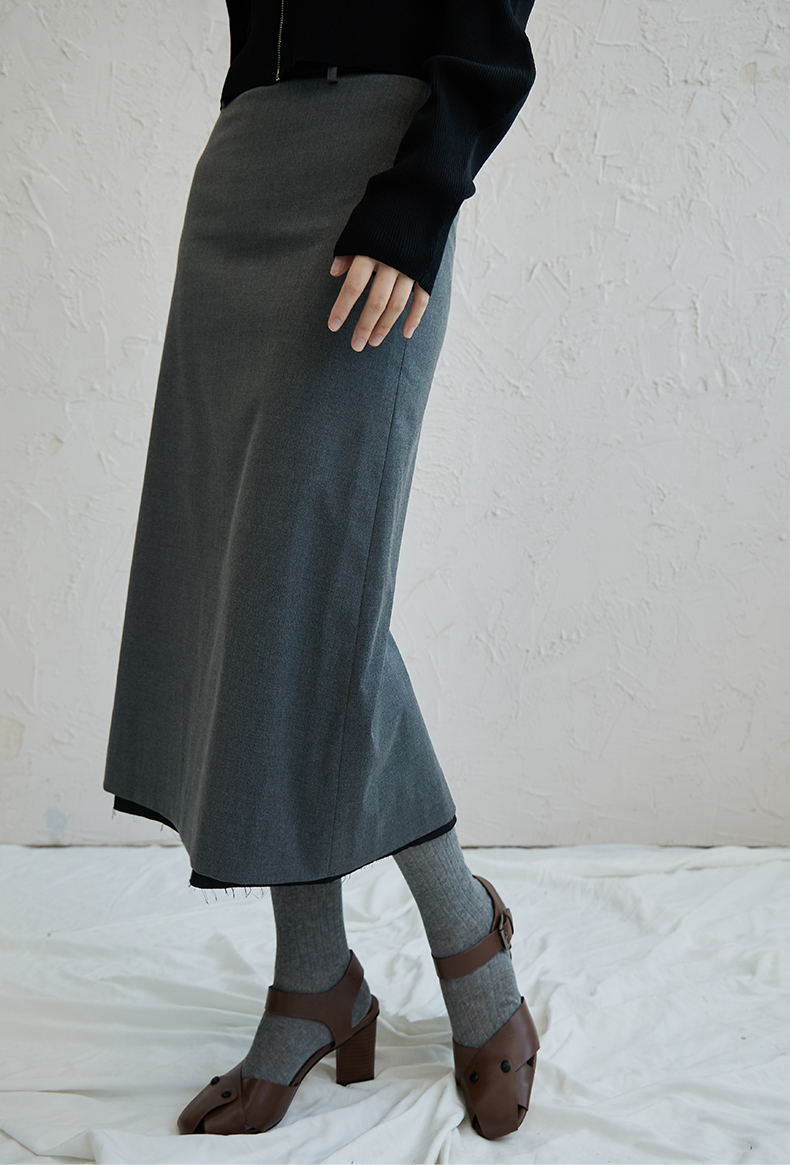 oldcolour高腰直筒半身裙2022秋新款休闲包臀毛边设计感长裙通勤