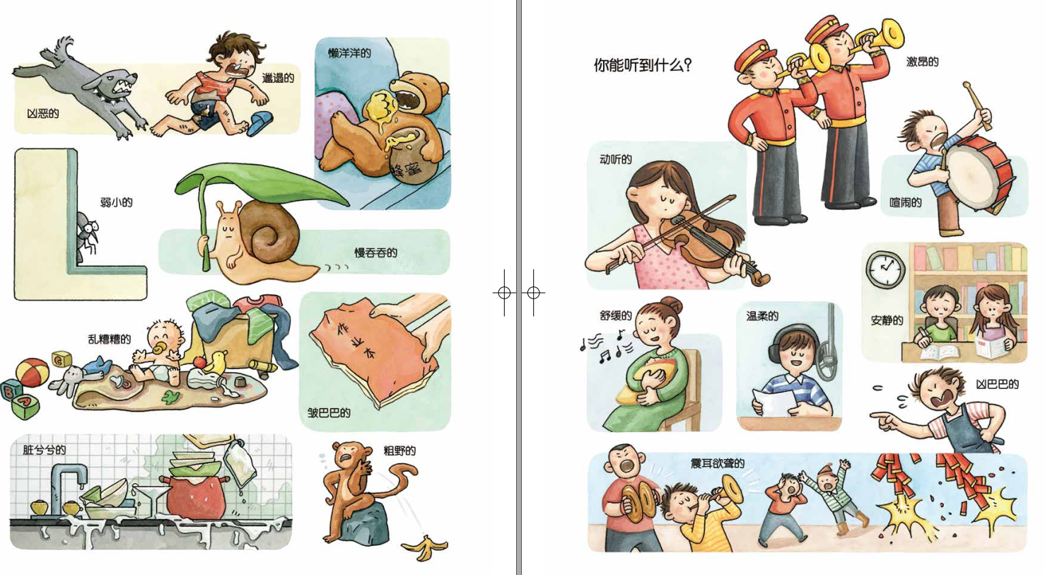 2.名词—动词—形容词—反义词—数量词—修辞,6大主题,1200+词汇,从字到词到句,抓住儿童语言发展规律,让认知逐级深入。