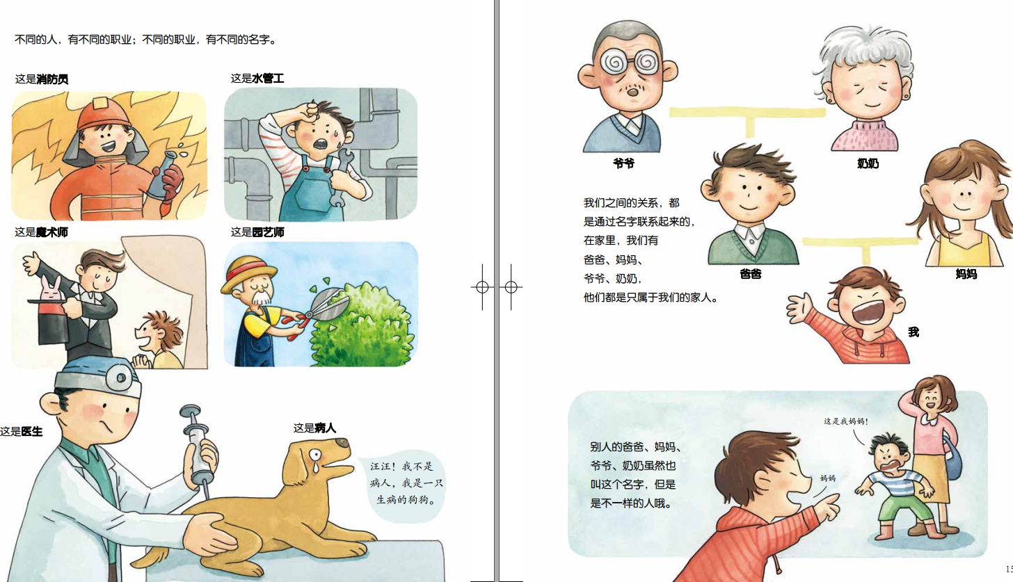 3.情景认知图画书,不同于传统的识字书,本套书把字词巧妙融入图画中,将认知场景化,图文结合,趣味互动,让语言学习变成了一件快乐又轻松的事,边玩边学。