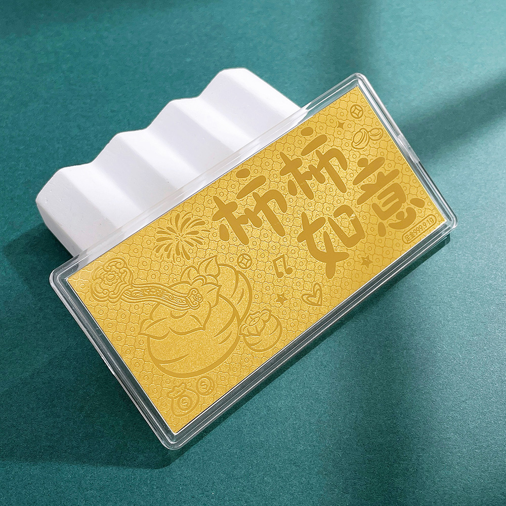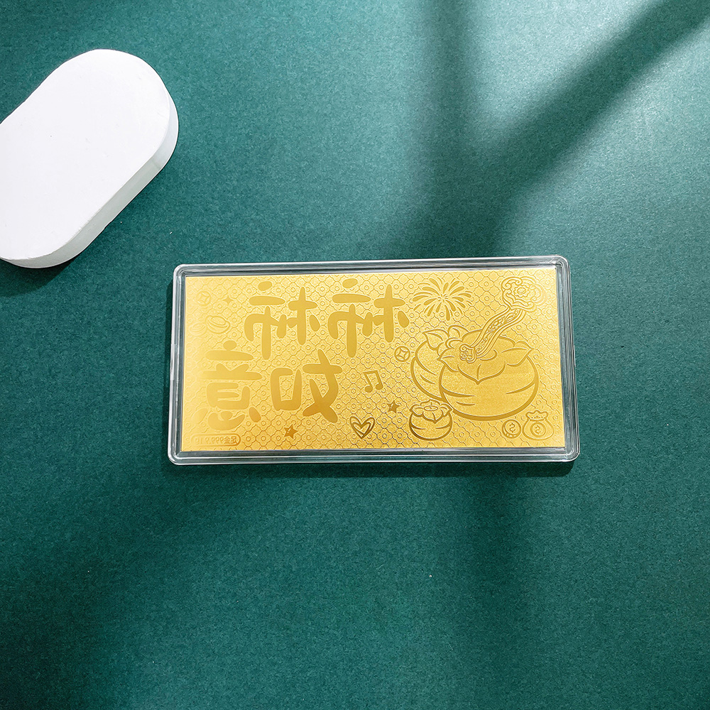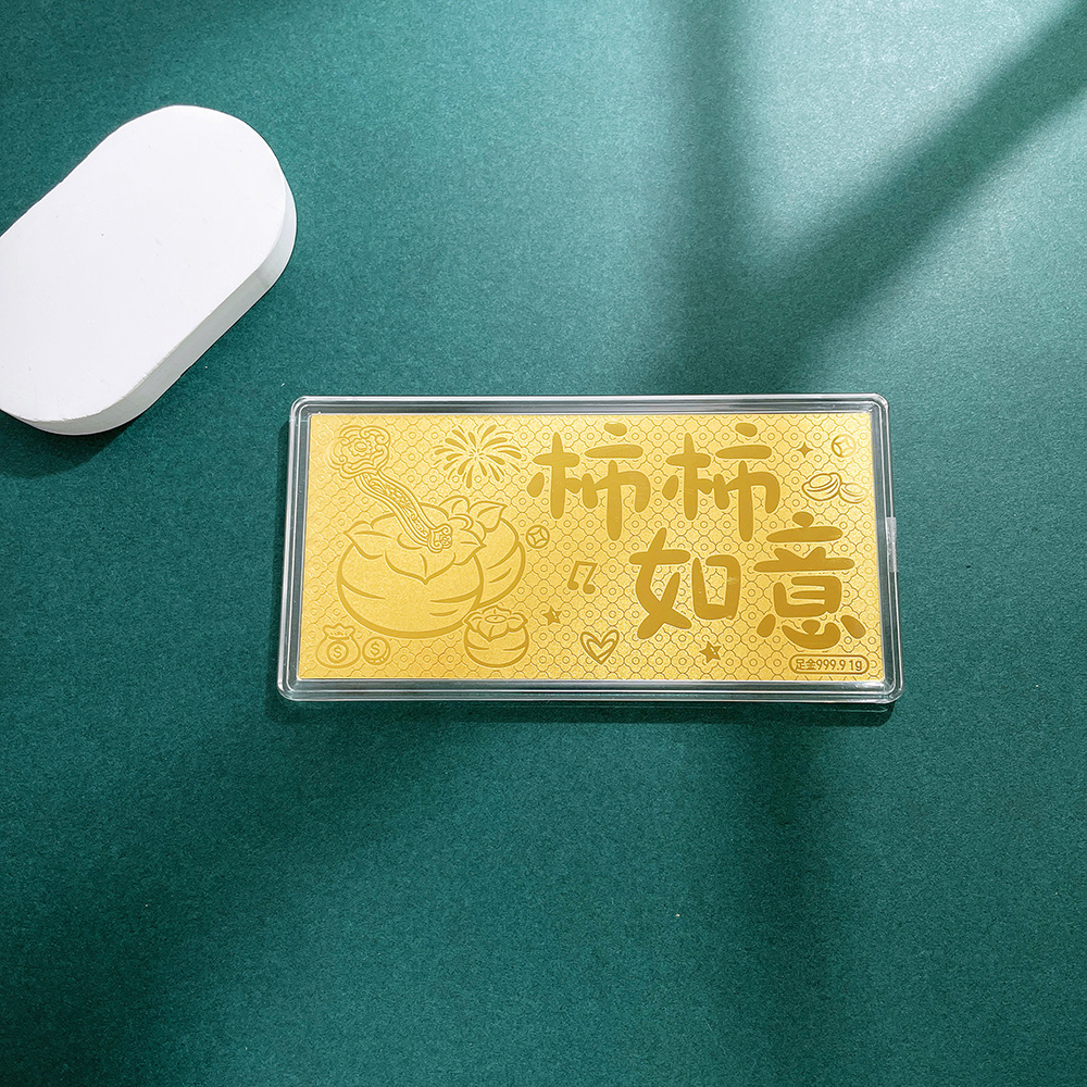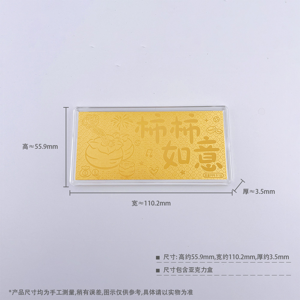 足金999.9 #小红书 1g实心金条柿柿如意吉言金钞(配图片红包、亚克力盒)(ZJJC00146)