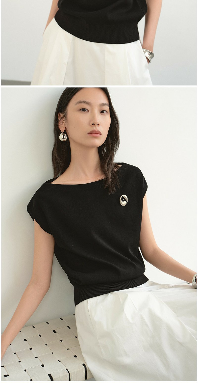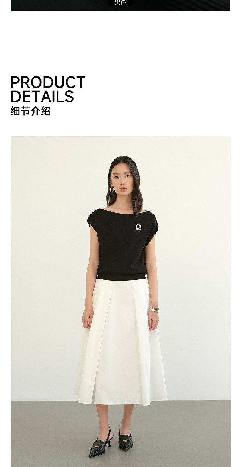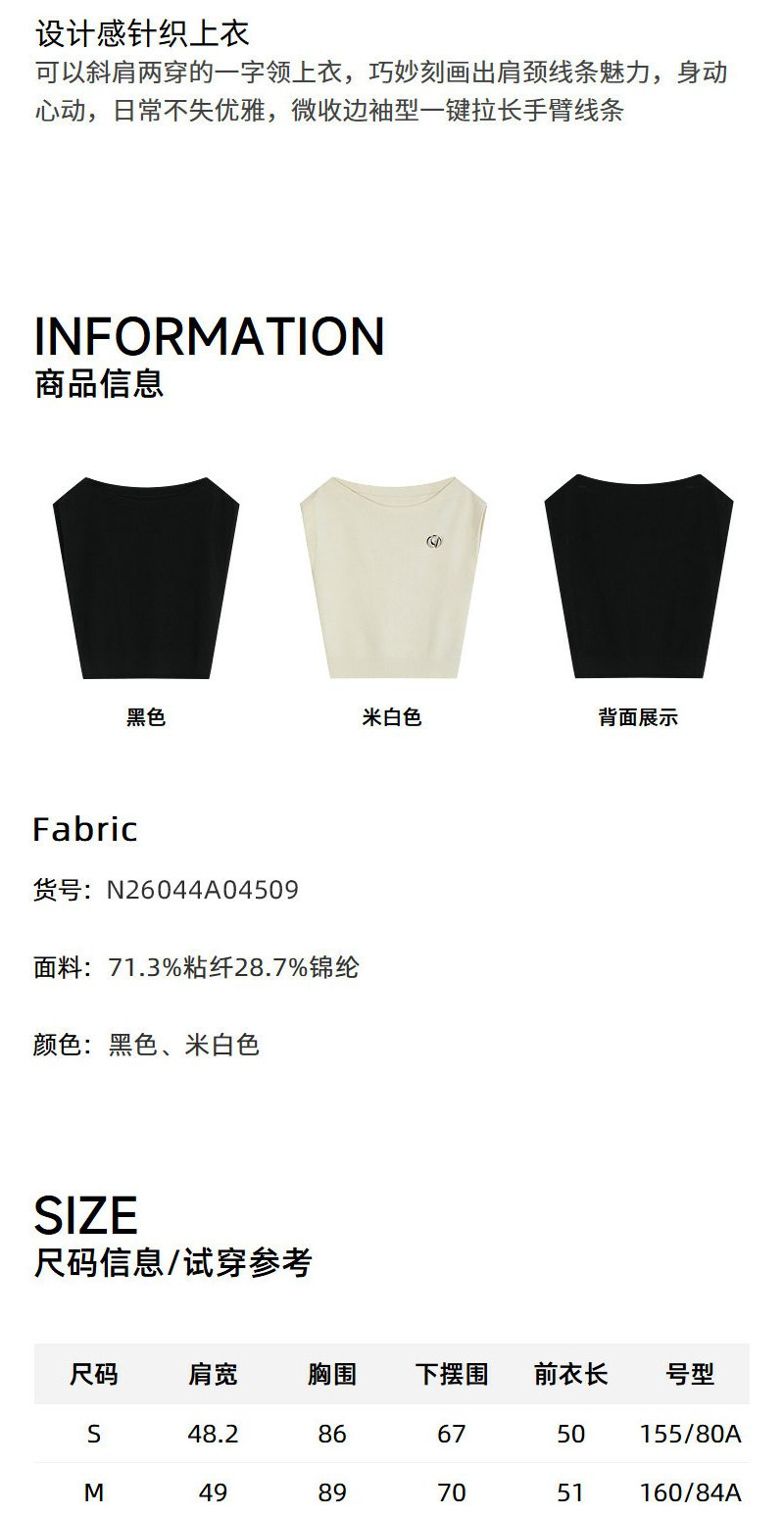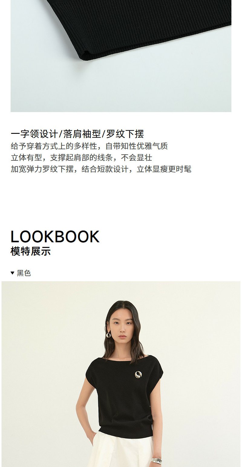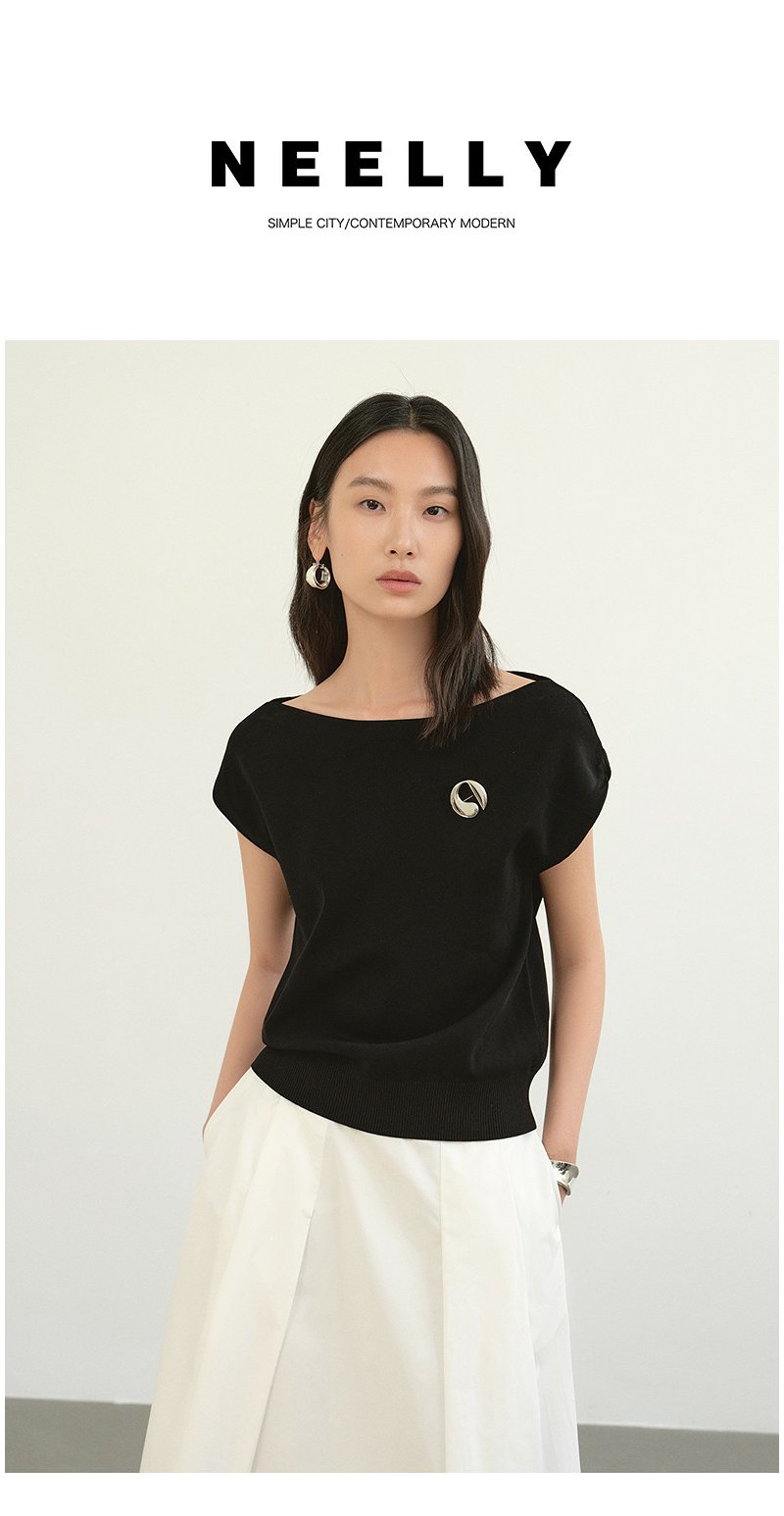 NEELLY纳俪商场同款夏新款设计感一字领针织衫女斜肩两穿显瘦上衣N26044A04509