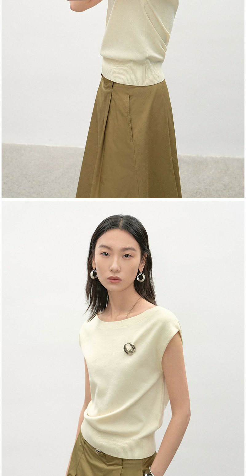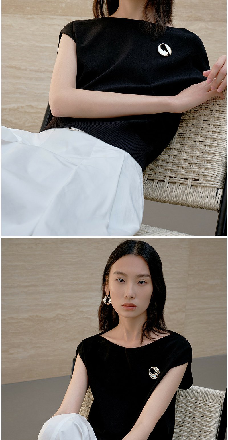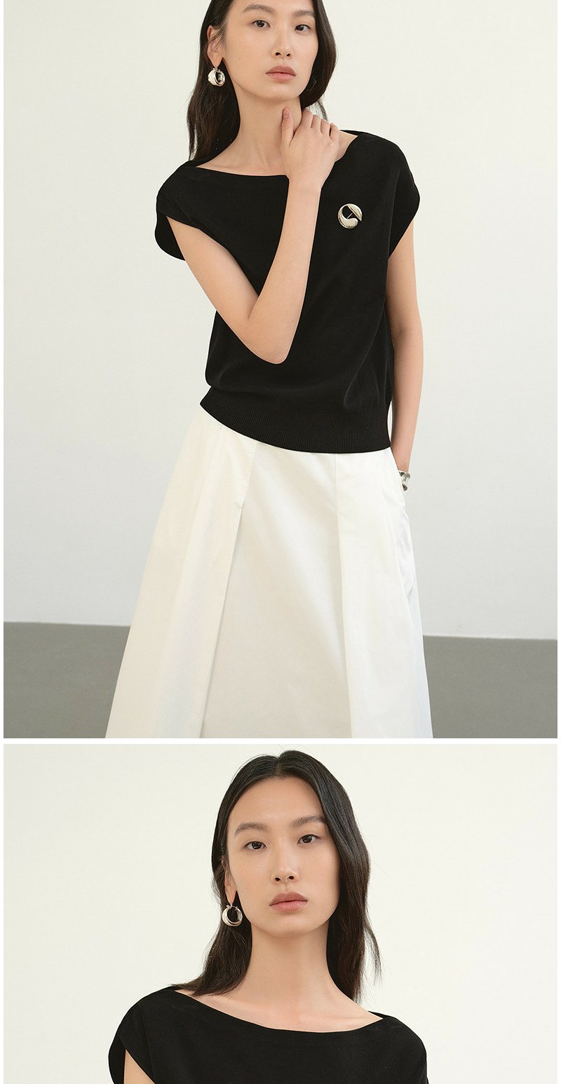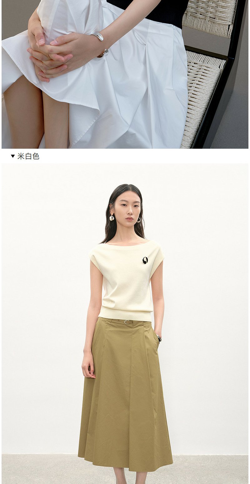 NEELLY纳俪商场同款夏新款设计感一字领针织衫女斜肩两穿显瘦上衣N26044A04509