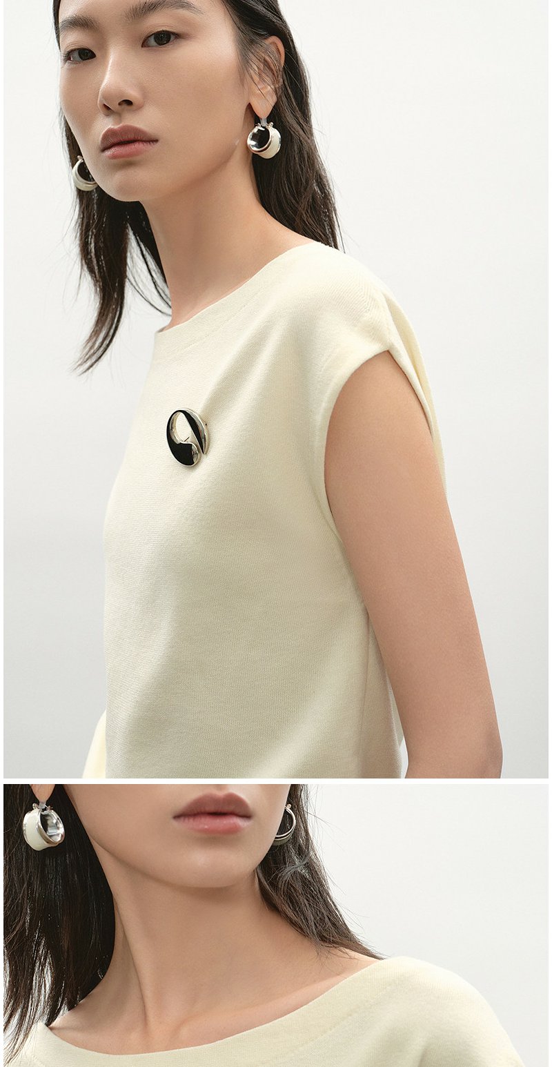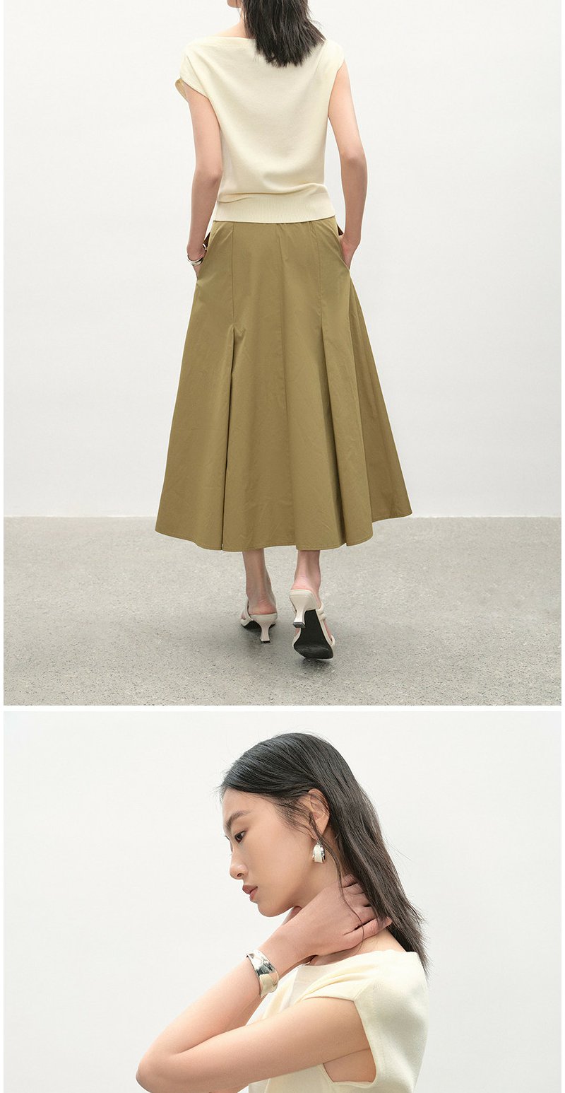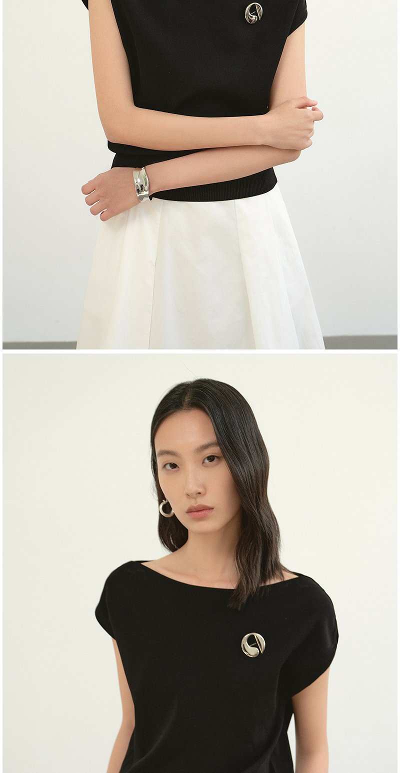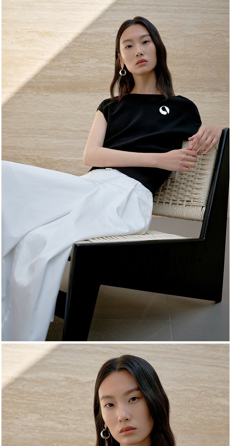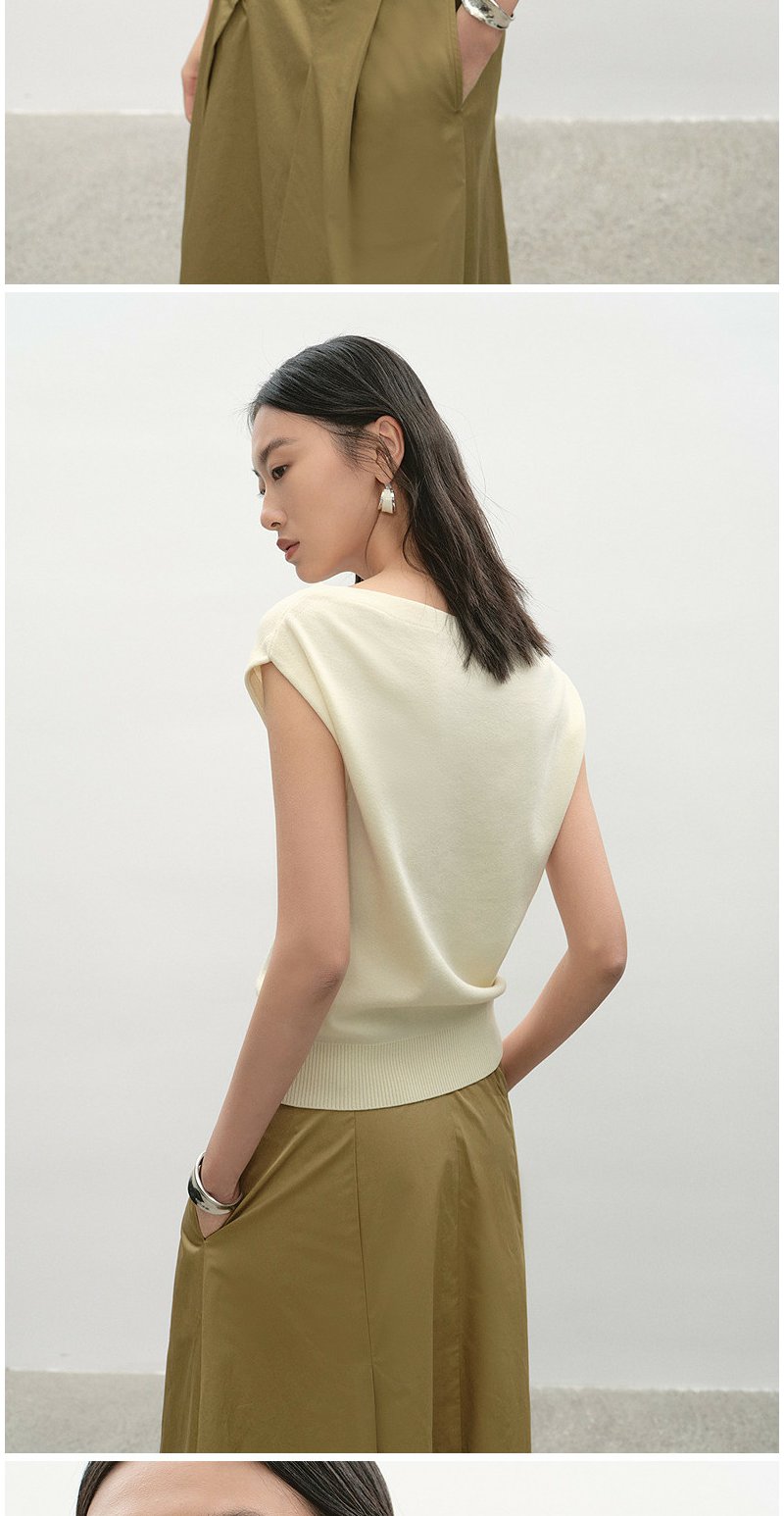 NEELLY纳俪商场同款夏新款设计感一字领针织衫女斜肩两穿显瘦上衣N26044A04509