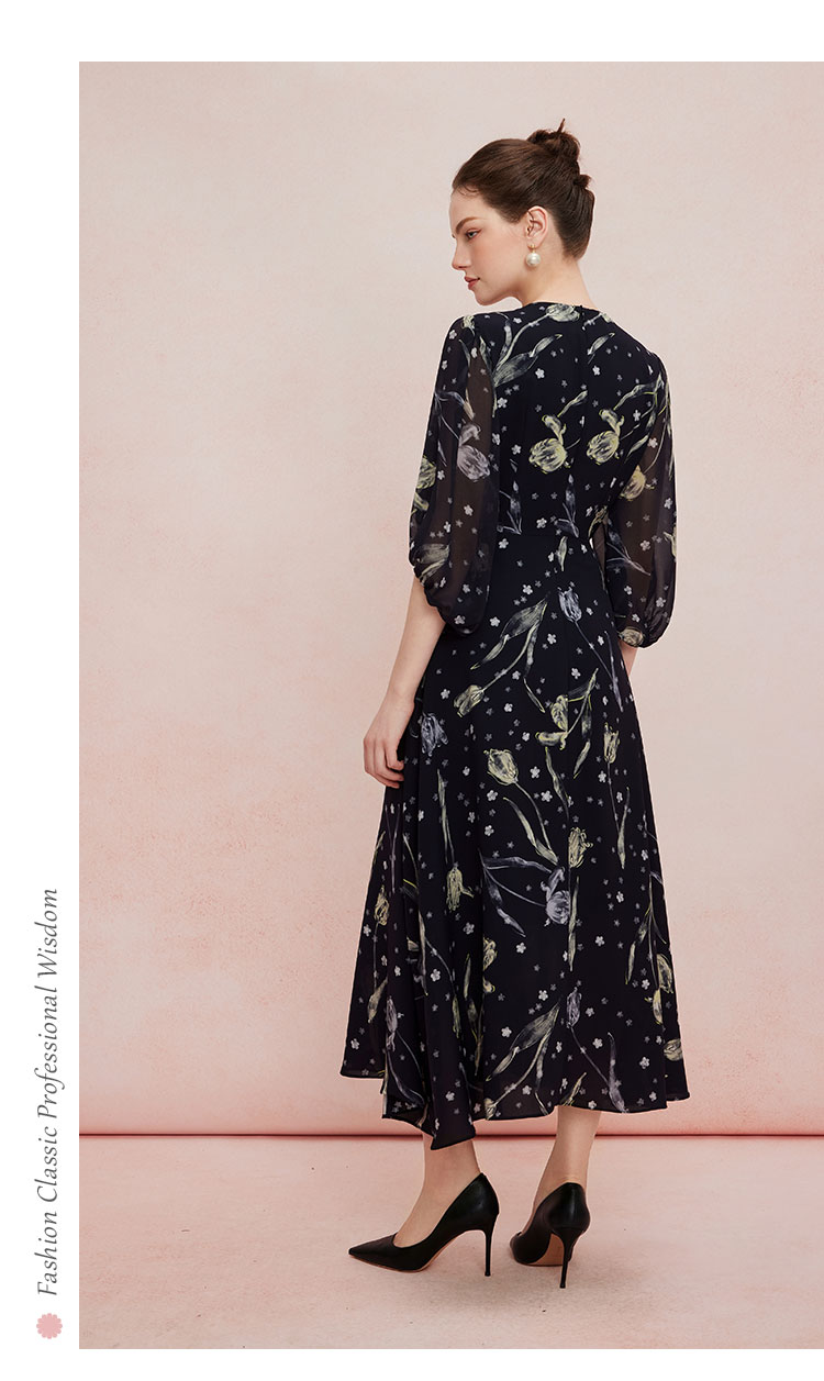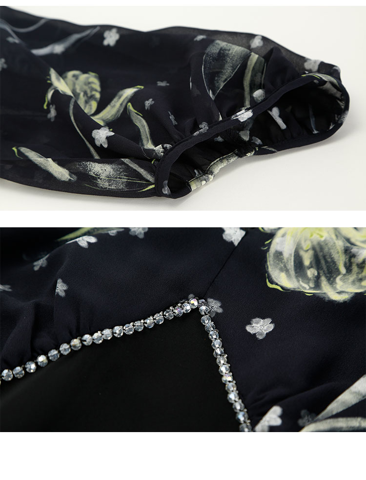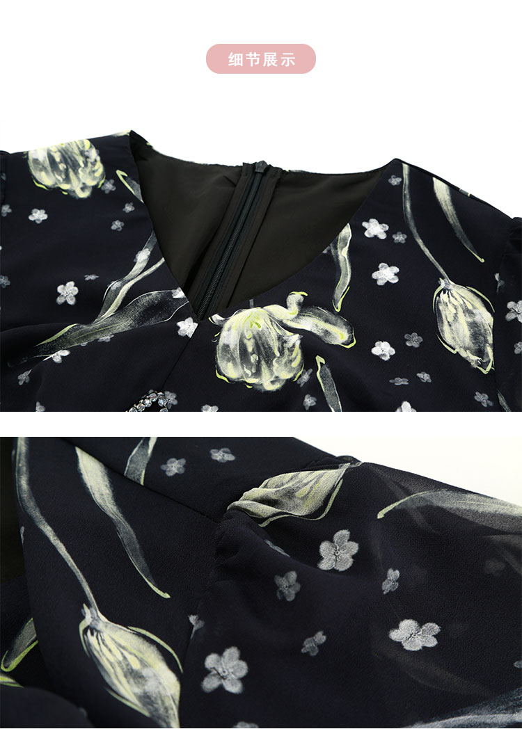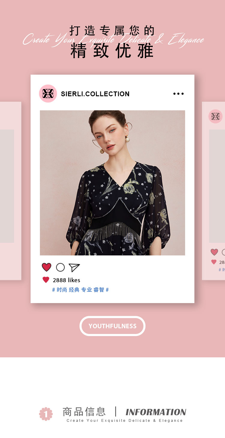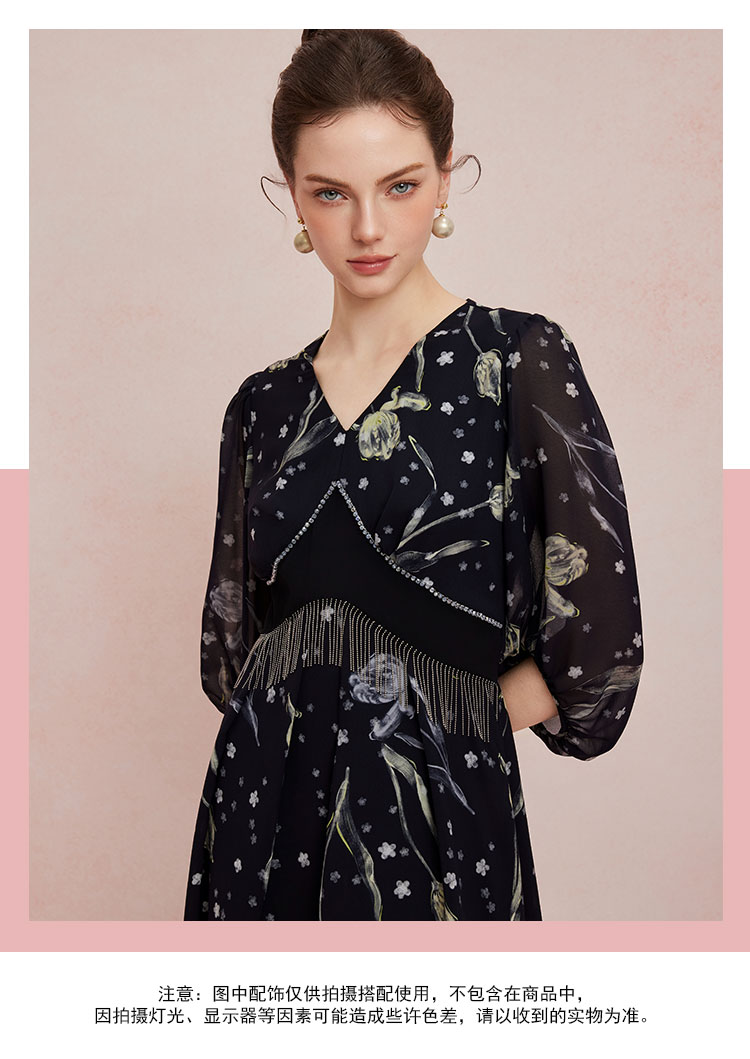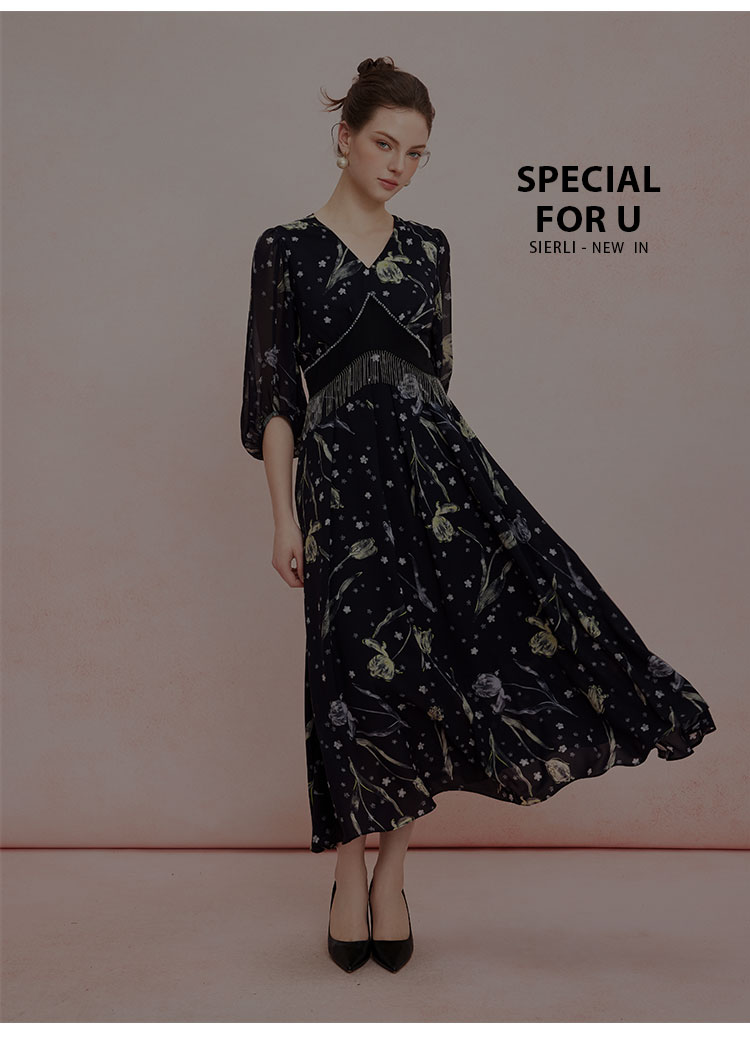 QF833斯尔丽25新款法式浪漫荷叶边腰间流苏显高显瘦散大摆碎花连衣裙