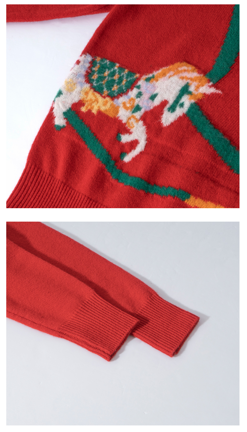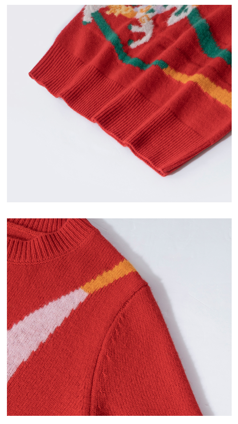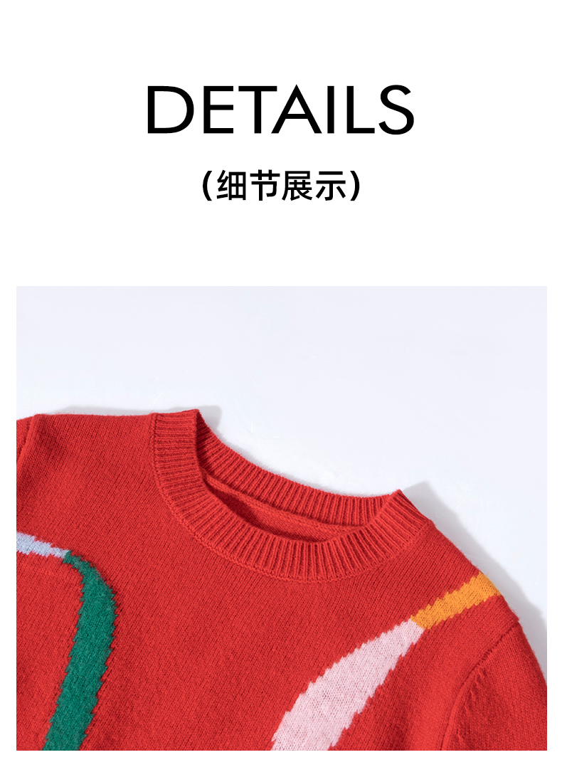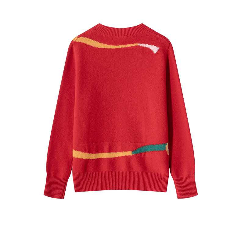 100%羊毛 新年幸运红色圆领羊毛毛衣 A-5751