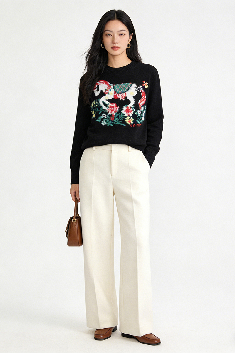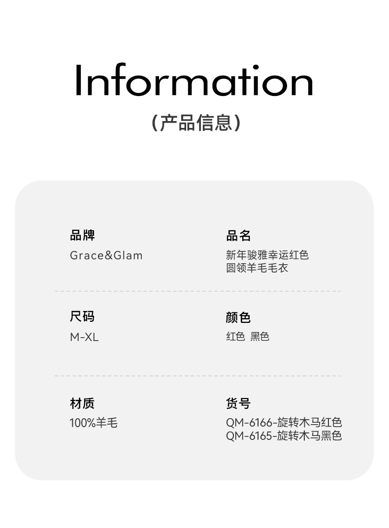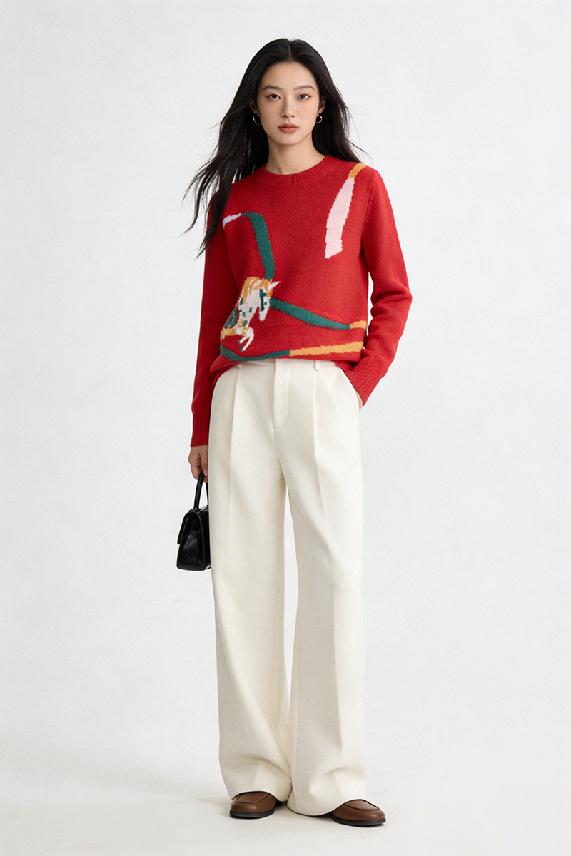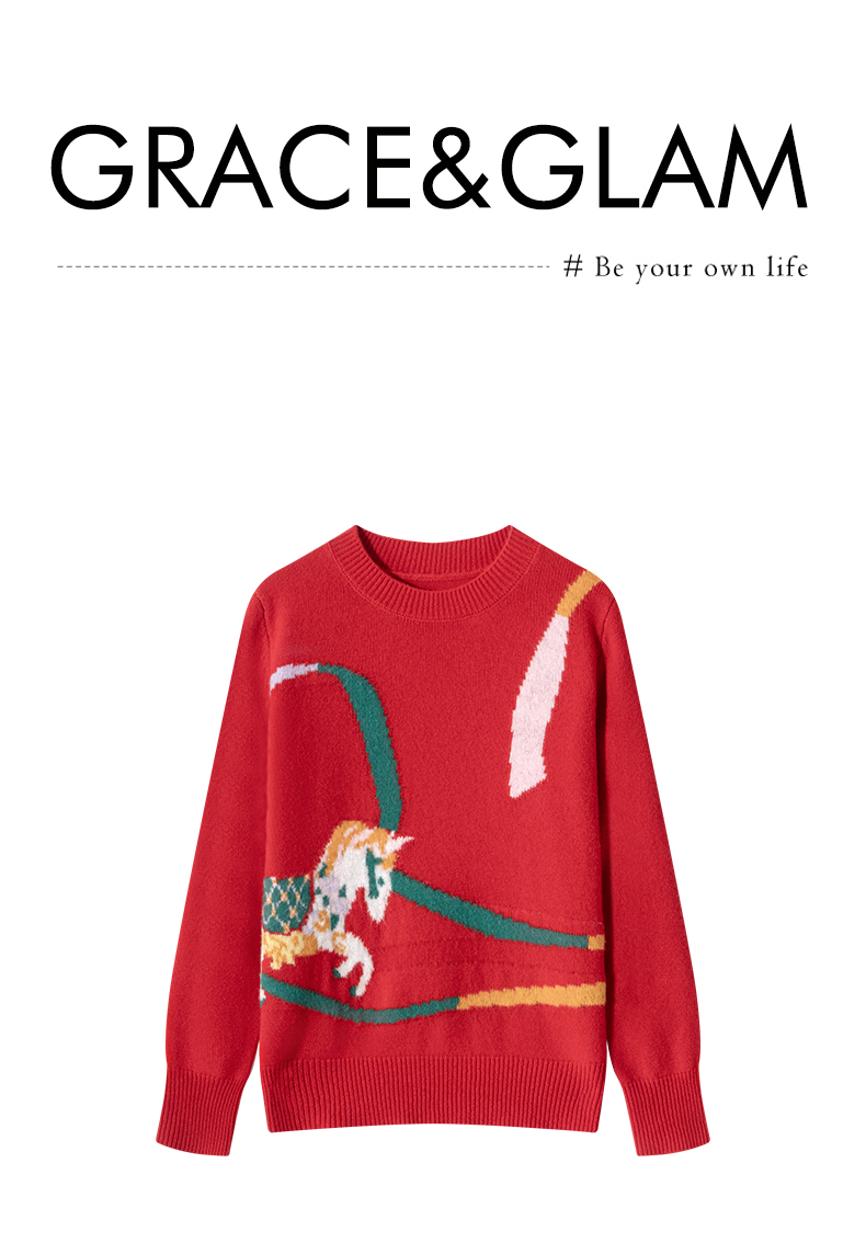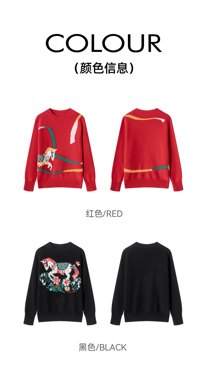 100%羊毛 新年幸运红色圆领羊毛毛衣 A-5751