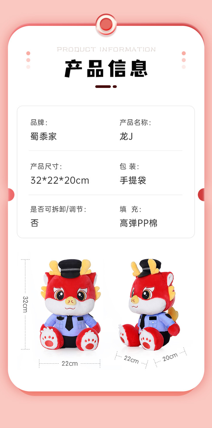 【蓝衬小龙(可定制)/清仓】可定制毛绒玩偶儿童礼品礼物萌萌龙公仔