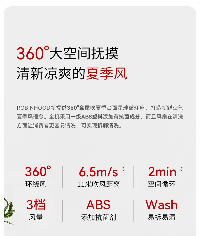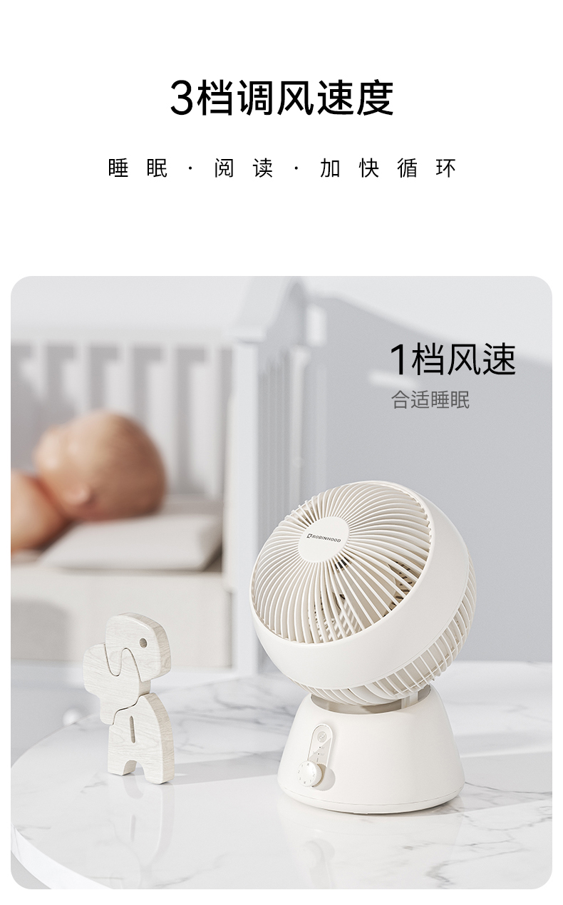 【洛宾汉360度台式空气循环扇】360度旋转摇头台式家用静音桌面小型电风扇