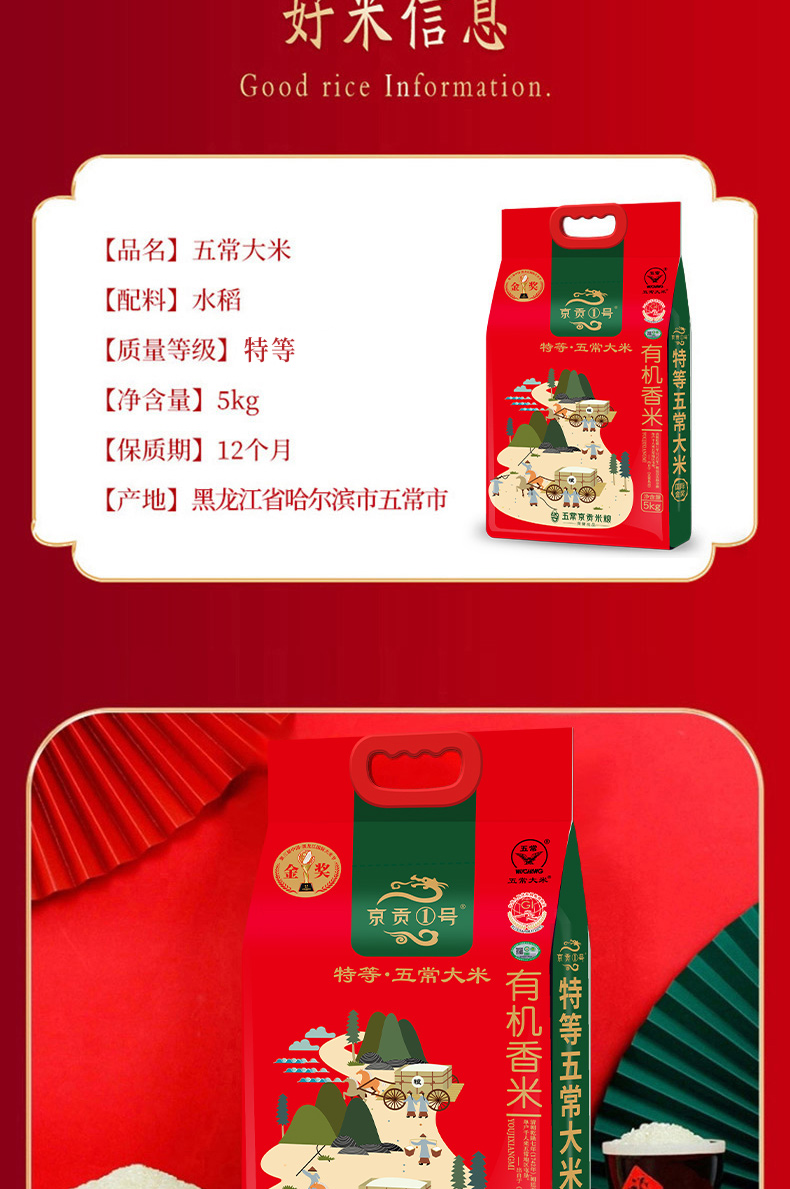 五常有机稻花香2号金奖大米(10斤真空包装)
