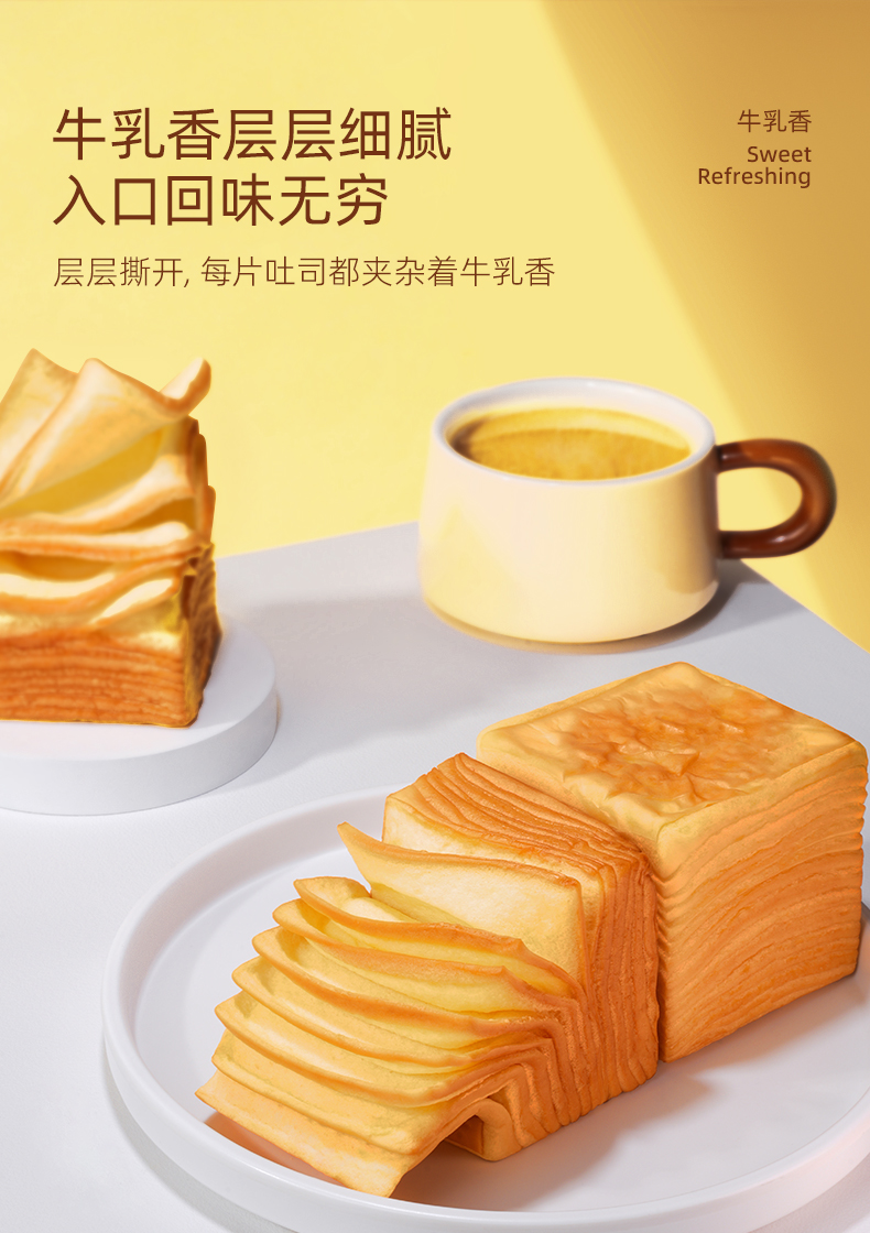 1、升级版翻页千层吐司,奶香味更浓,早餐必备。