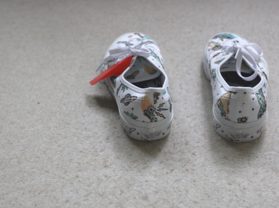 整体是帆布料 单层无衬 前脸比OS鞋型要短点 只有四个鞋带孔