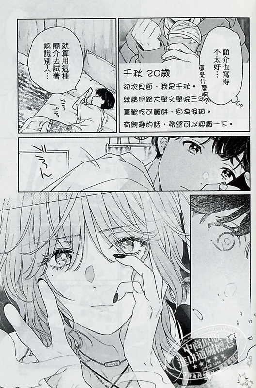 儿玉千秋是个没有女友的资历=年龄的平凡大学生。他以轻松的态度开始使用约会程序,并在上面认识了比自己大几岁、在水烟咖啡厅工作的都。